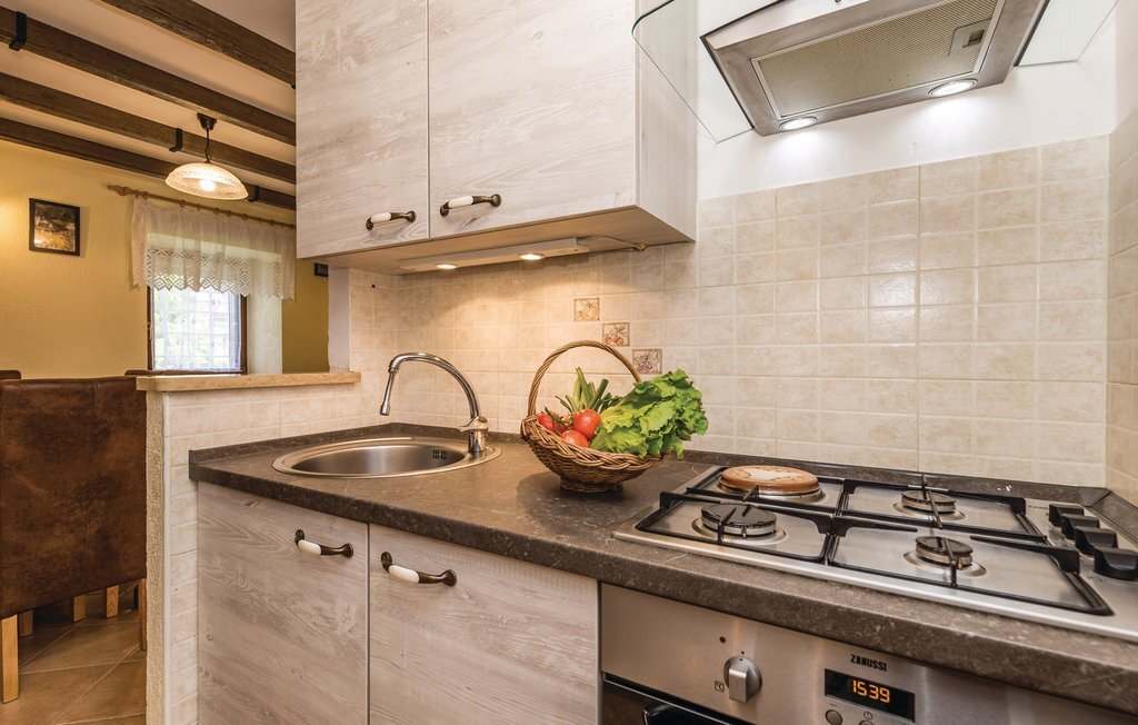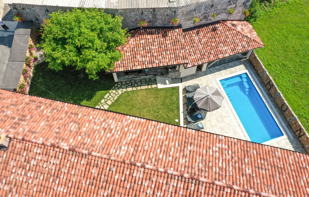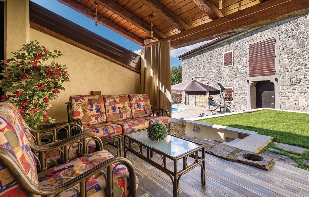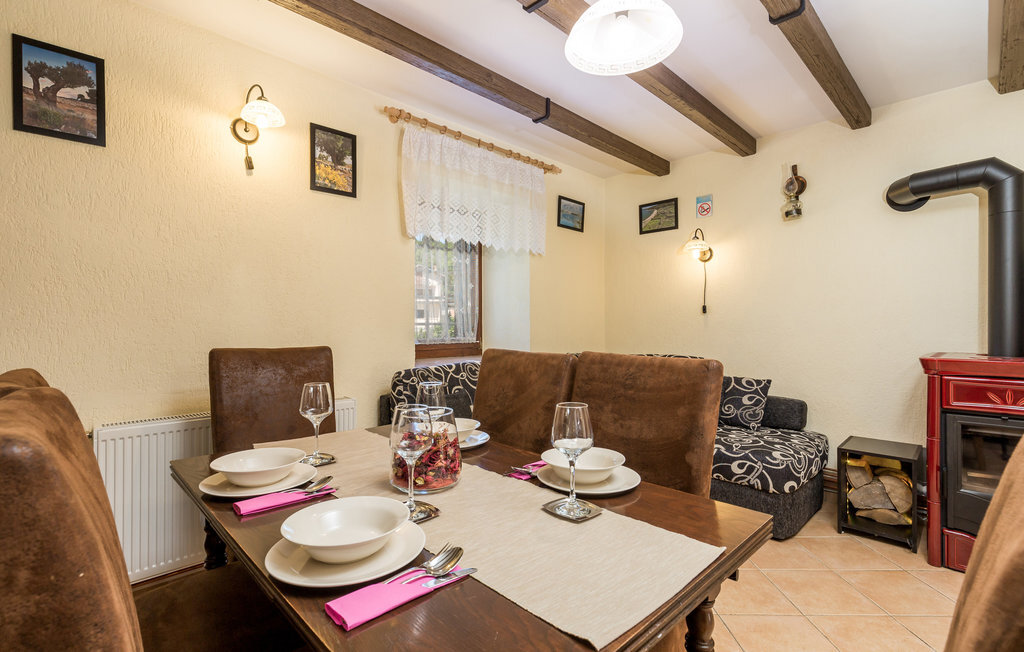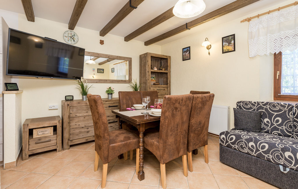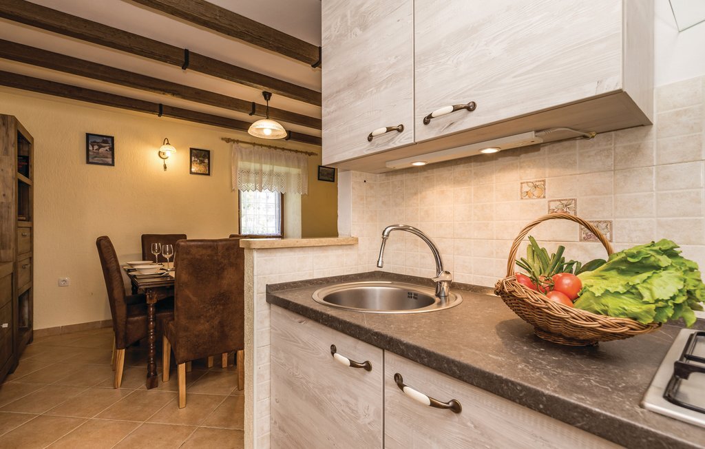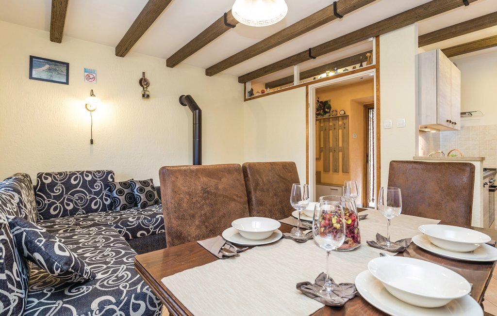 Cette charmante maison de vacances se trouve dans le petit village de Vele Mune. Vous y passerez des vacances parfaites, vous serez entourés d'un paysage magnifique, de vergers, de prairies, d'étangs et de forêts. La maison est aménagée de manière confortable et pratique. Au rez-de-chaussée se trouve la salle de séjour et à l'étage, les chambres à coucher. La cour est spacieuse ; on y trouve une terrasse, une piscine et un barbecue. La piscine est équipée d'un stérilisateur UV qui assure en plus l'hygiène de l'eau. Avec le billard et les fléchettes, vous vous amuserez beaucoup. Le climat de la côte montagneuse assure des journées chaudes et ensoleillées et des nuits fraîches. De belles plages se trouvent sur la Riviera d'Opatija, il y a également beaucoup à voir et à faire dans l'ancienne Kastav et à Rijeka. La baie de Kvarner abrite les meilleurs restaurants de Croatie, ils vous régaleront tous d'une excellente cuisine méditerranéenne. En accord avec le propriétaire, il est possible d'utiliser 3 vélos pour adultes et 2 pour enfants. Une coupole de piscine assure un plaisir agréable même en avant et en arrière-saison.
