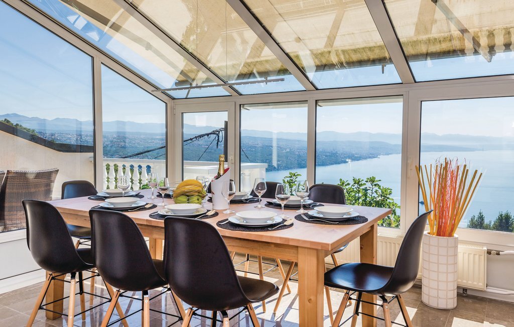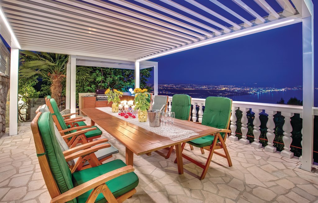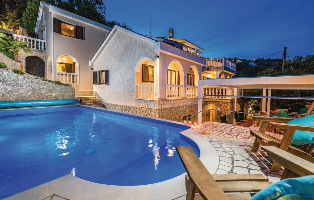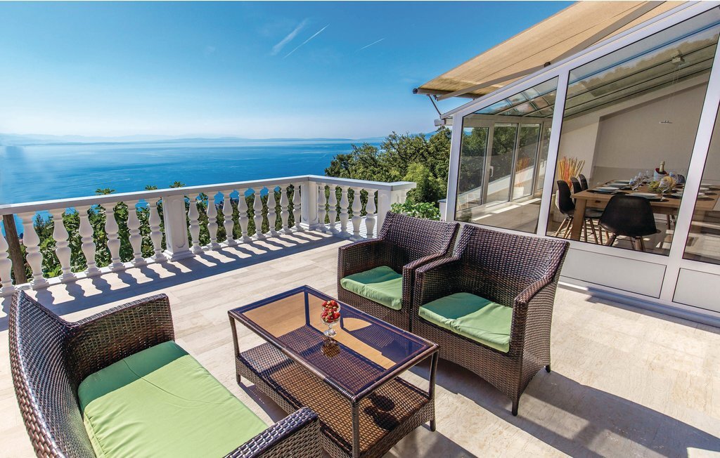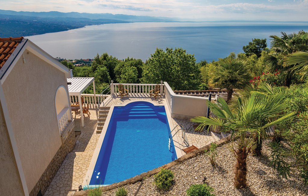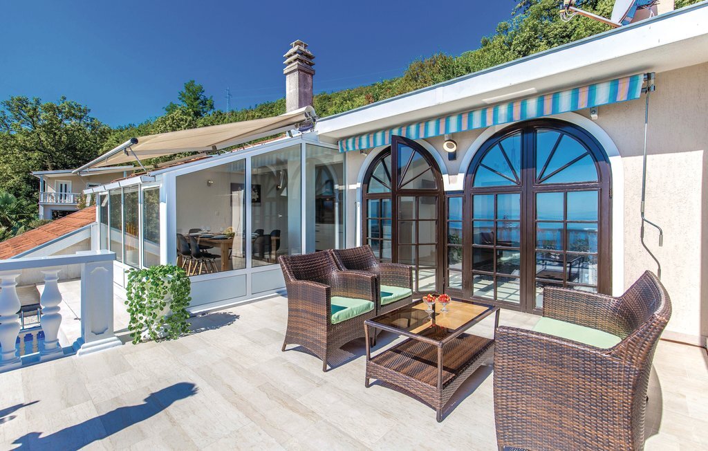 Profitez de la vue imprenable sur la baie de Kvarner depuis cette maison de vacances. Elle est située au calme sur un terrain bien entretenu et clôturé. Vous passez vos vacances à proximité d'Opatija sur un terrain en terrasse. Les derniers 30 m environ de l'accès ne sont pas asphaltés. Passez d'agréables vacances dans ce logement composé de trois unités d'habitation séparées et reliées en partie par des escaliers extérieurs. La plus grande unité, qui s'étend sur trois étages, est reliée par des escaliers intérieurs. La hauteur de plafond la plus basse est de 170 cm. Les nombreuses terrasses offrent à chacun un coin à lui. En voiture, vous atteindrez aussi rapidement les premières plages. Visitez Opatija, qui offre de nombreux divertissements et établissements gastronomiques.