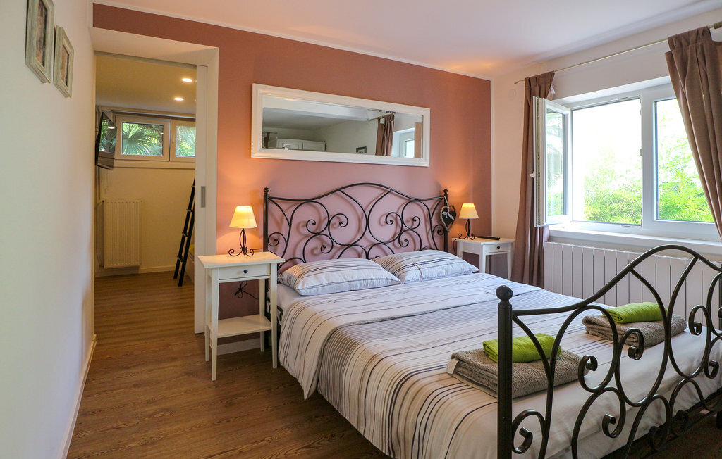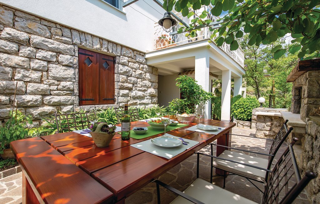 Dans le village de Rukavac, au-dessus de la baie de Kvarner, se trouve cette petite mais confortable maison jumelée, joliment aménagée. Du rez-de-chaussée, avec le salon, la cuisine et la salle de bain, un escalier mène à l'espace de couchage ouvert. De la chambre à coucher n° 1, on accède à la chambre à coucher n° 2, où se trouve un lit superposé. NETFLIX est à la disposition des cinéphiles. Le terrain commun est clôturé et vos enfants peuvent jouer sans souci pendant que vous lisez tranquillement un bon livre, buvez un verre de vin, prenez un bain de soleil au bord de la piscine ou préparez des grillades. Le propriétaire exploite une culture de framboises bio et vous initiera volontiers à la préparation de différents produits à base de framboises.