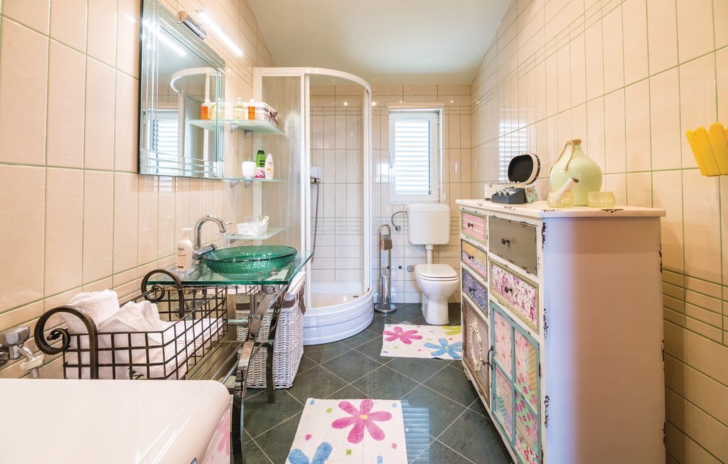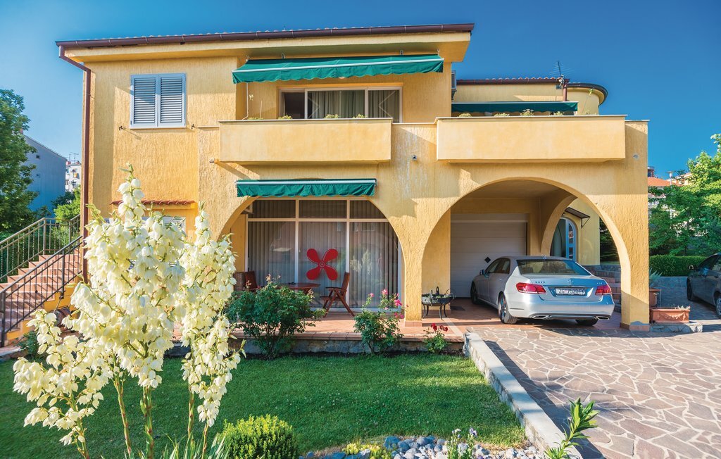 Cette magnifique maison jumelée avec jardin commun offre à ses hôtes la possibilité de passer des vacances reposantes dans une agréable atmosphère de vie. Elle se trouve dans un quartier résidentiel calme de Rijeka et à proximité de la ville côtière magique d'Opatija. Du rez-de-chaussée, des escaliers en marbre blanc avec des photos d'art décorées sur les murs mènent à l'étage supérieur, où se trouve l'appartement de vacances aménagé avec beaucoup d'amour du détail. De la cuisine-salon, vous accédez au balcon où vous pouvez savourer votre café du matin. La hauteur de plafond la plus basse est d'environ 120 cm. Un barbecue et de beaux meubles de jardin sont à votre disposition sur le terrain bien entretenu. Les plages sont facilement accessibles en voiture, tout comme le centre-ville de Rijeka et les nombreux restaurants de la ville voisine d'Opatija.