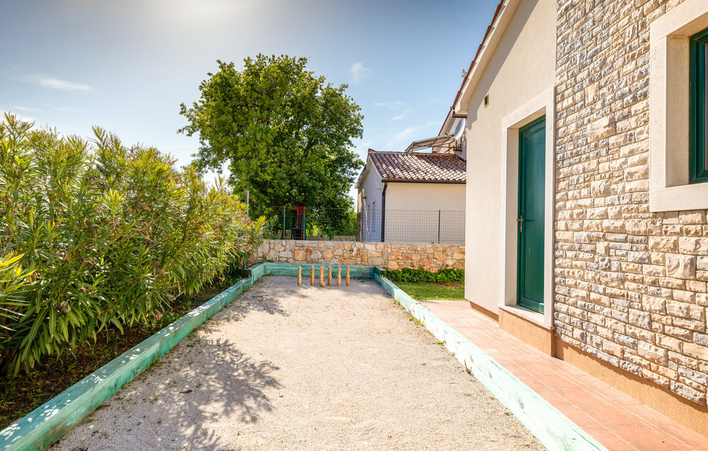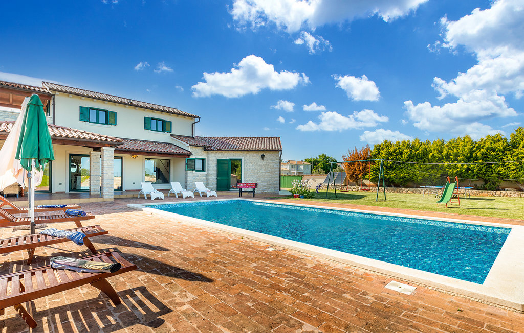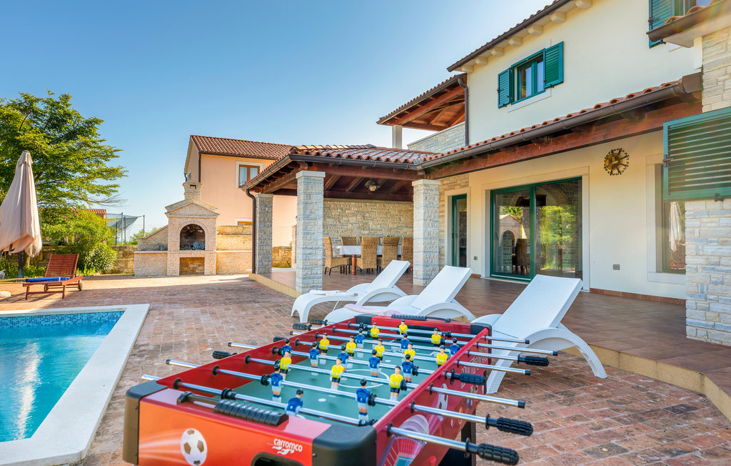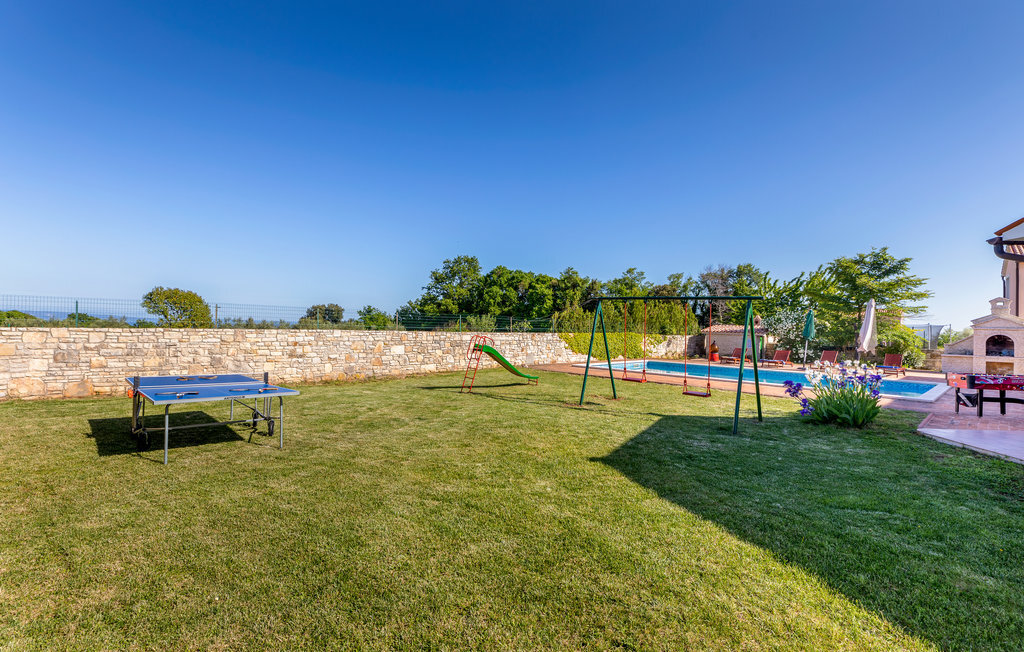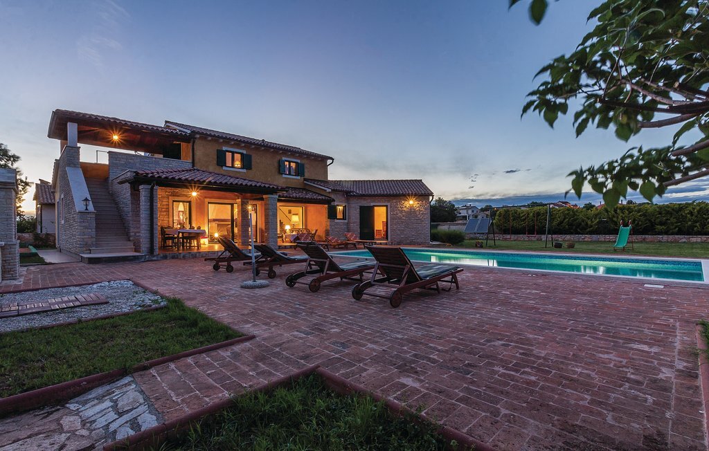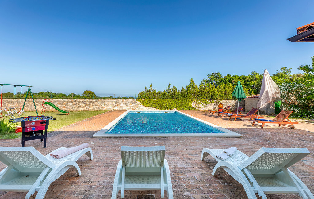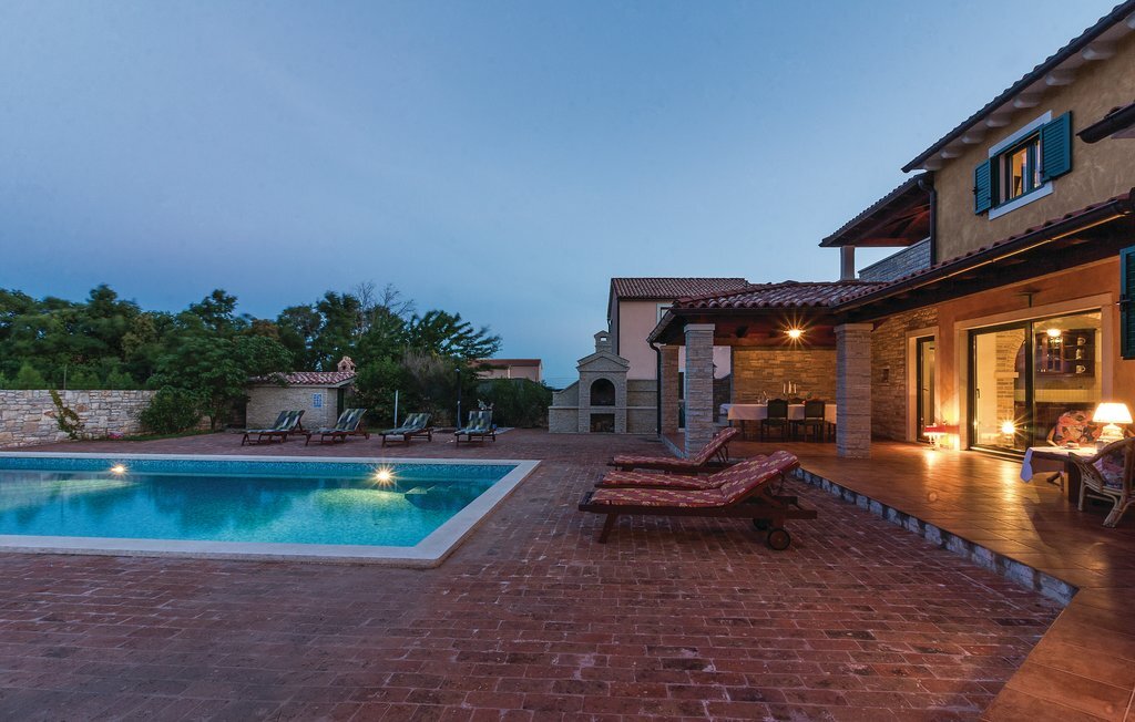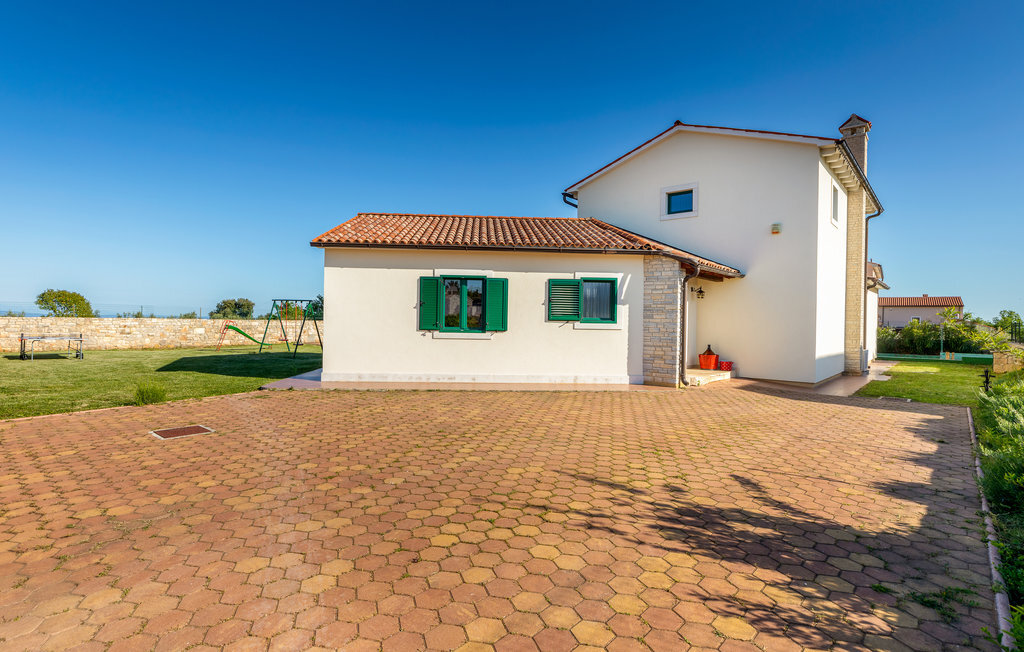 Cette maison de vacances est située dans un petit village à proximité de la ville de Pula. Au rez-de-chaussée se trouvent le salon, la cuisine et deux chambres avec deux salles de bains. Le premier étage abrite deux chambres à coucher avec deux salles de bain. Des escaliers intérieurs et extérieurs mènent à l'étage supérieur. Il offre une belle vue sur les environs et en partie sur la mer. Il faut noter qu'il y a aussi des pistes cyclables spéciales à proximité, de sorte que les amateurs de sports extrêmes, peuvent vraiment se dépenser ici. Les jours de grande chaleur, vous pourrez vous rafraîchir dans la grande piscine et vos enfants pourront s'amuser avec le toboggan, la bascule et la balançoire. La maison est une bonne base pour des excursions. Visitez les ruines romaines de Pula, les plages de Sisan et des environs ainsi que les villages pittoresques du centre de l'Istrie, tous situés à une distance relativement courte de Valtura. Terminez les soirées d'été en beauté sur la terrasse en faisant un barbecue avec vos amis ou votre famille.