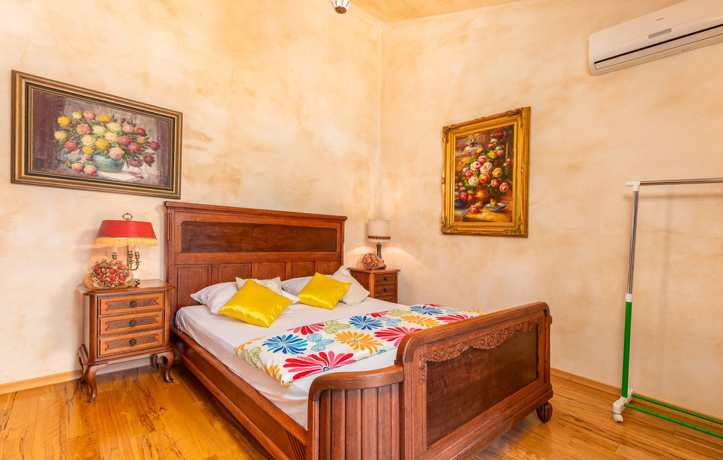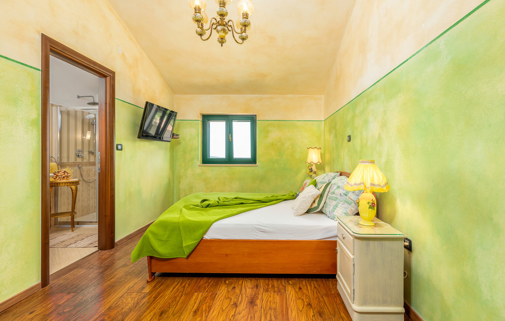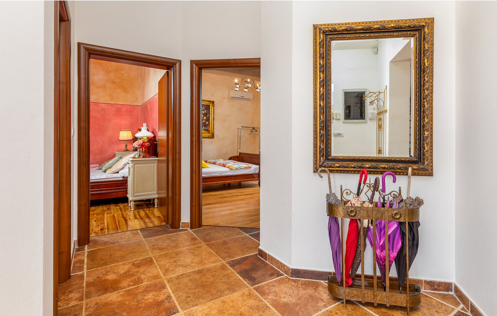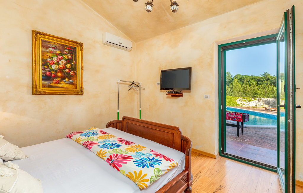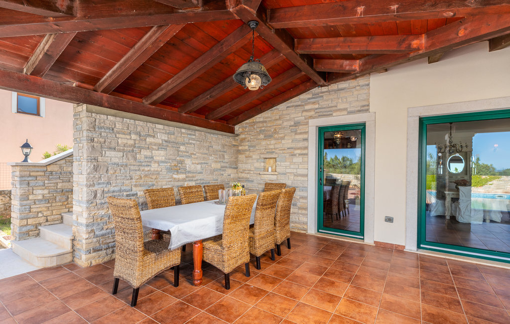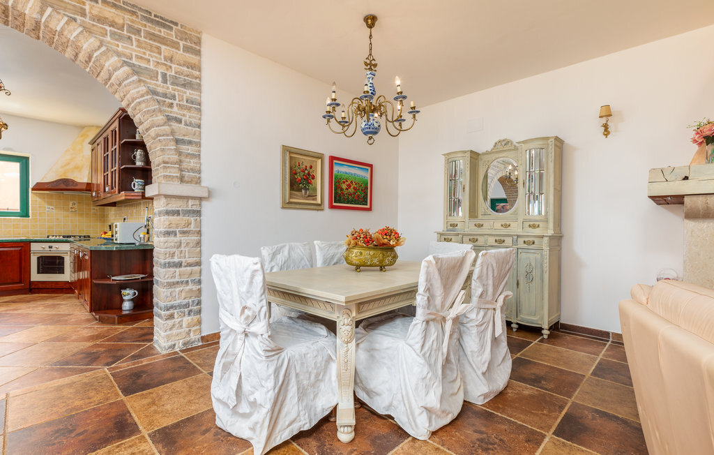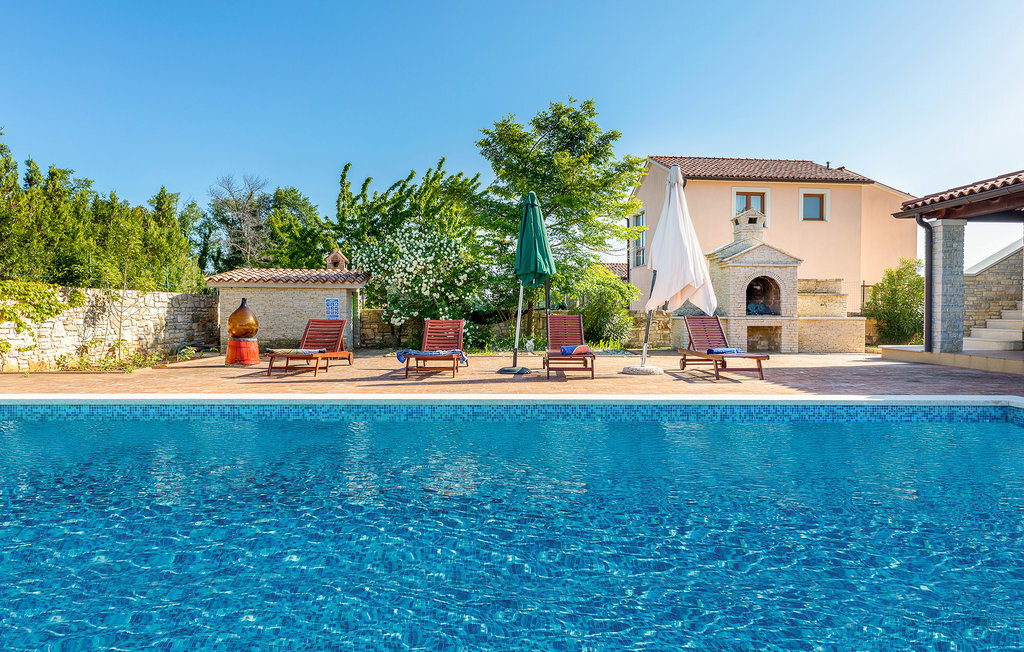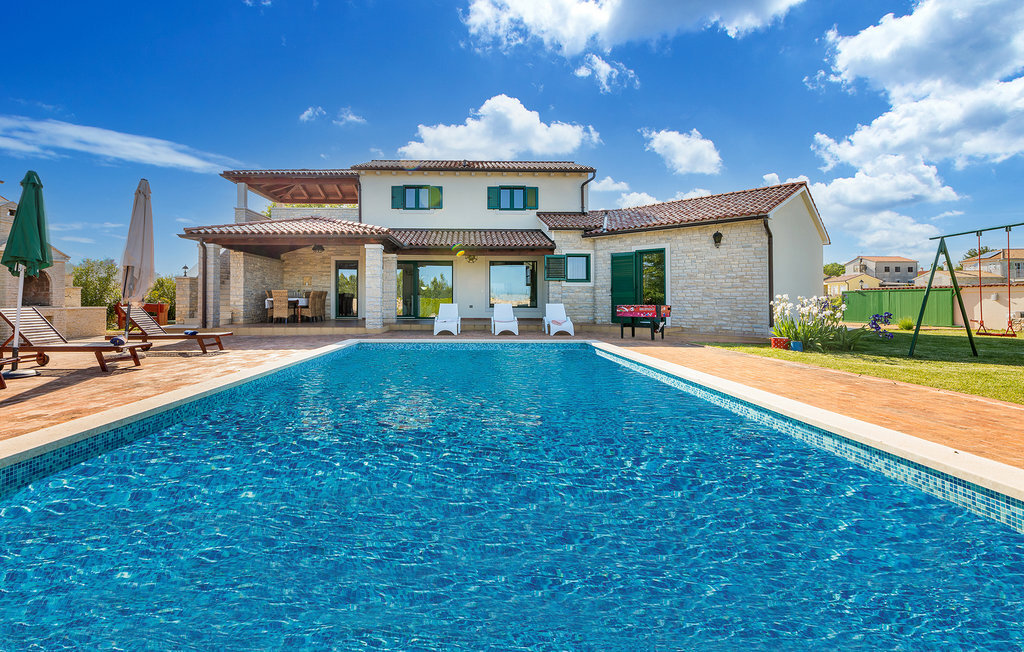 Cette maison de vacances est située dans un petit village à proximité de la ville de Pula. Au rez-de-chaussée se trouvent le salon, la cuisine et deux chambres avec deux salles de bains. Le premier étage abrite deux chambres à coucher avec deux salles de bain. Des escaliers intérieurs et extérieurs mènent à l'étage supérieur. Il offre une belle vue sur les environs et en partie sur la mer. Il faut noter qu'il y a aussi des pistes cyclables spéciales à proximité, de sorte que les amateurs de sports extrêmes, peuvent vraiment se dépenser ici. Les jours de grande chaleur, vous pourrez vous rafraîchir dans la grande piscine et vos enfants pourront s'amuser avec le toboggan, la bascule et la balançoire. La maison est une bonne base pour des excursions. Visitez les ruines romaines de Pula, les plages de Sisan et des environs ainsi que les villages pittoresques du centre de l'Istrie, tous situés à une distance relativement courte de Valtura. Terminez les soirées d'été en beauté sur la terrasse en faisant un barbecue avec vos amis ou votre famille.