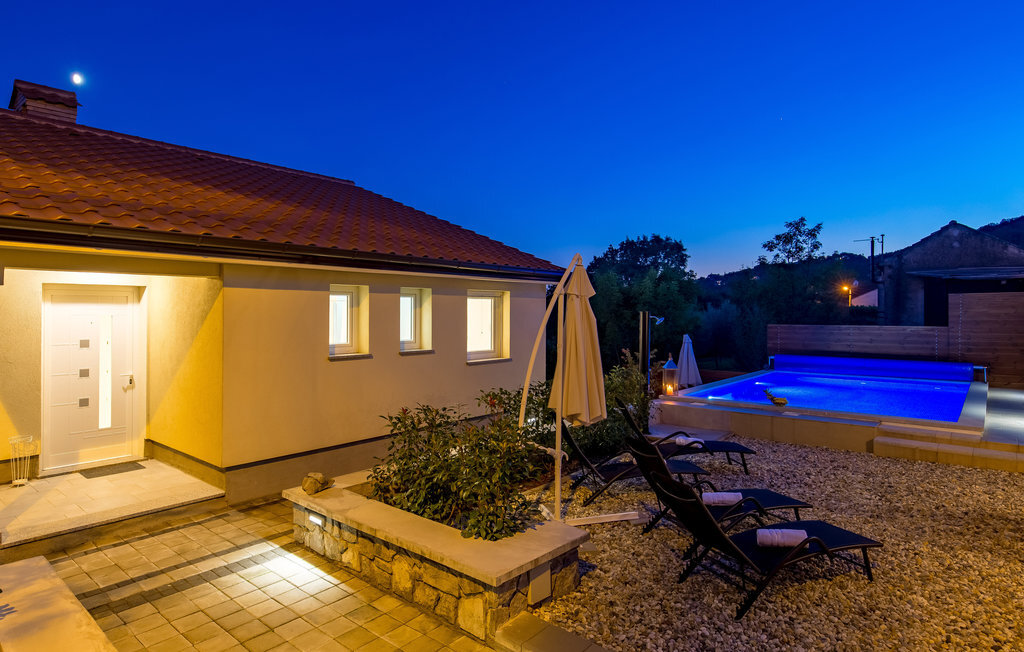 Dans le petit village de Matulji, non loin d'Opatija, cette belle maison de vacances moderne avec escalier extérieur est idéale pour les vacances. Au rez-de-chaussée, il y a un petit appartement avec son propre espace de vie, une cuisine, une chambre et une salle de bain, tandis qu'en plus, à l'étage, il y a une salle de séjour spacieuse avec cuisine, trois chambres et deux salles de bain. La maison est donc intéressante pour deux familles ou amis qui souhaitent passer leurs vacances ensemble, tout en conservant leurs propres espaces de vie et de sommeil. Sur le terrain se trouve une belle terrasse avec barbecue, idéale pour se réunir en toute convivialité, ainsi qu'une piscine, idéale pour se rafraîchir lors des chaudes journées d'été. À côté de la maison se trouve une oliveraie avec une prairie où vos enfants pourront jouer sans souci. Opatija elle-même offre une multitude de possibilités de divertissement, aussi bien pendant les mois d'été que tout au long de l'année. Ne manquez pas non plus de profiter de la riche offre gastronomique et œnologique dans une série de grands restaurants. Vous aimez les loisirs actifs en pleine nature ? Pour cela, nous vous recommandons le parc naturel d'Uka avec ses nombreux sentiers forestiers et pistes cyclables.