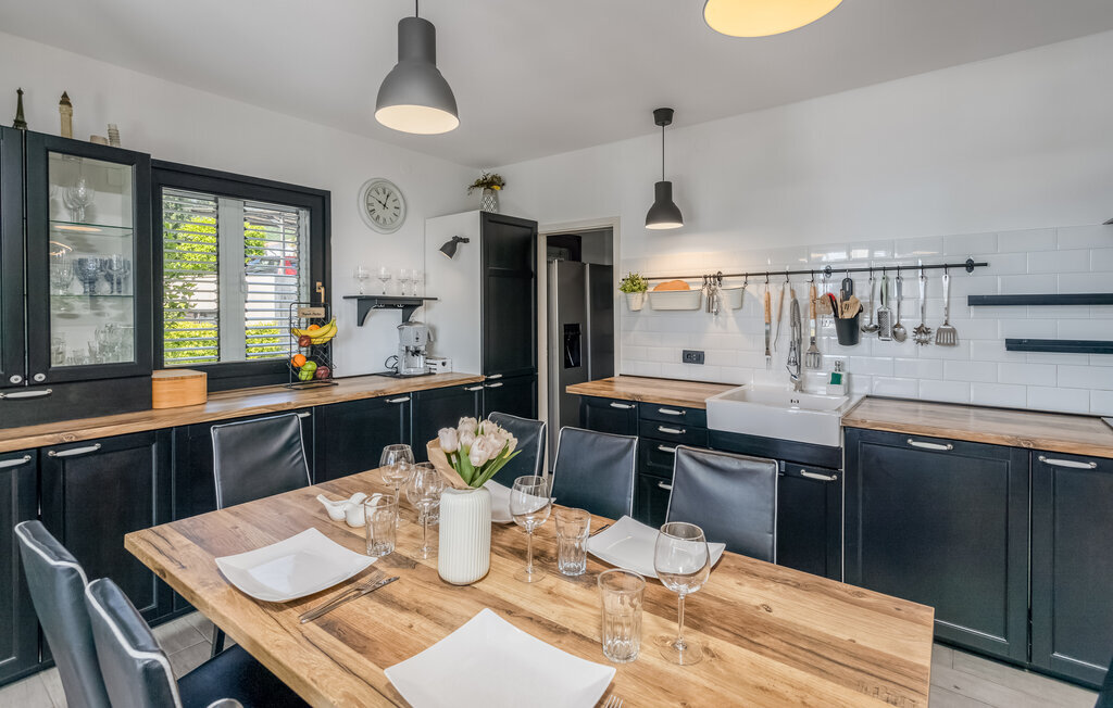 Cette maison de vacances confortable se trouve dans le village calme de Pobri, juste au-dessus de la ville d'Opatija. Au rez-de-chaussée se trouve la salle de séjour avec cuisine et coin repas, tandis qu'à l'étage se trouvent trois chambres à coucher et une salle de bain. Derrière la maison, sur le terrain clôturé, se trouve la terrasse de jardin avec barbecue ainsi que la piscine extérieure. Le jacuzzi se trouve dans une partie de la piscine où vous pouvez profiter de l'hydromassage. En dix minutes de voiture environ, vous pouvez rejoindre les pittoresques plages urbaines d'Opatija, Iii et Volosko. Mais si vous souhaitez passer un peu de temps à explorer la région, longez la côte, le long de laquelle vous pourrez visiter de magnifiques petites villes comme Lovran, Medveja et Moenika Draga. Opatija propose de nombreuses manifestations, en particulier pendant les mois d'été. Il est recommandé de se promener le soir le long de la promenade du Lungomare, où vous pourrez déguster des spécialités de poisson sur les terrasses ouvertes des restaurants.