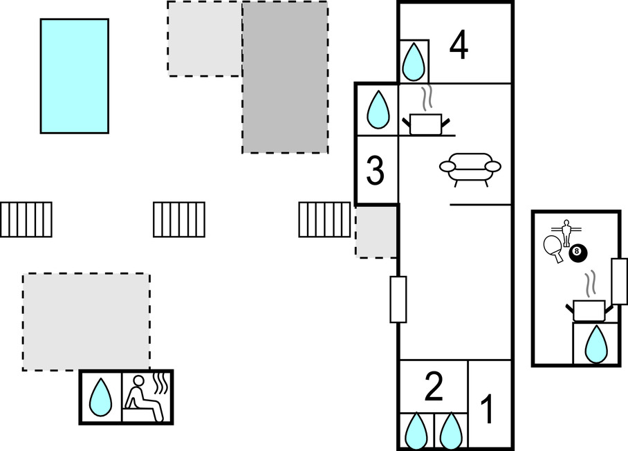 Location de vacances avec activités : Cette location de vacances comprend un ou plusieurs équipements de loisir (ping-pong, billard, baby-foot...)