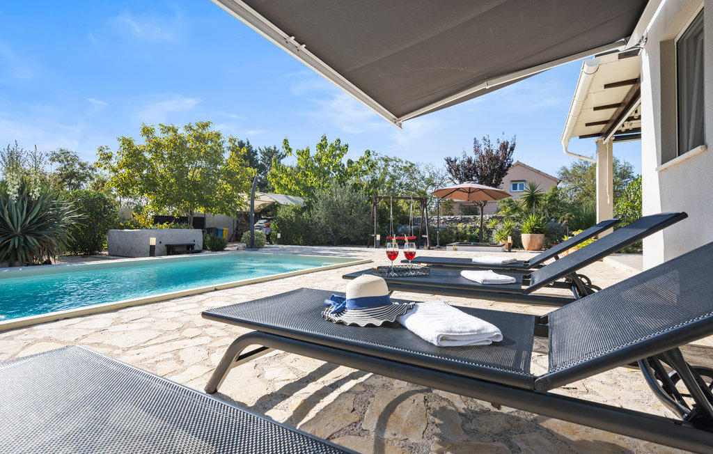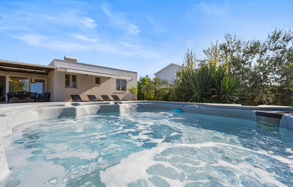 Bien-être à l'extérieur : Location de vacances disposant de chaises-longues et d'un ou plusieurs équipements tels que piscine extérieure, jacuzzi extérieur, lit à baldaquin de jardin etc...