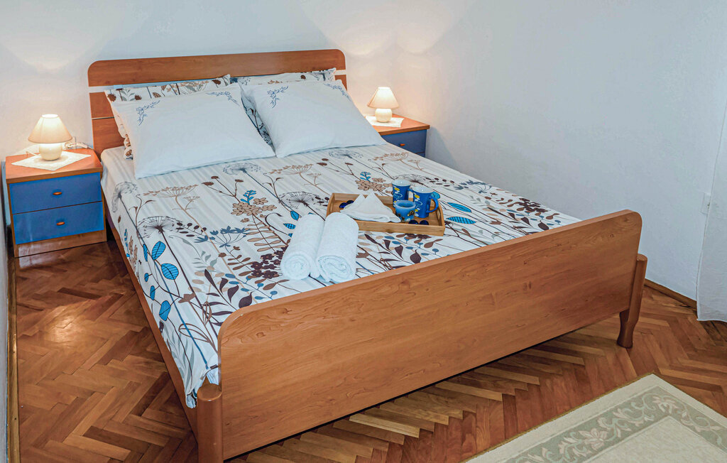 Passez d'agréables vacances balnéaires à Banjol, où vous attend cette maison de vacances aménagée de manière simple et fonctionnelle. Sur le terrain, une terrasse avec barbecue et meubles de jardin est à votre disposition pour passer d'agréables moments en plein air. Promenez-vous le long de la promenade du bord de mer qui s'étend jusqu'à la ville de Rab. Dans les environs, il y a de nombreuses petites plages de galets, la belle plage de Pudarica se trouve à l'entrée de Barbat. Il y a également une boîte de nuit ouverte qui est bien fréquentée à toute heure de la journée. Une excursion à Lopar et au sommet du Kamenjak sur l'île est recommandée.