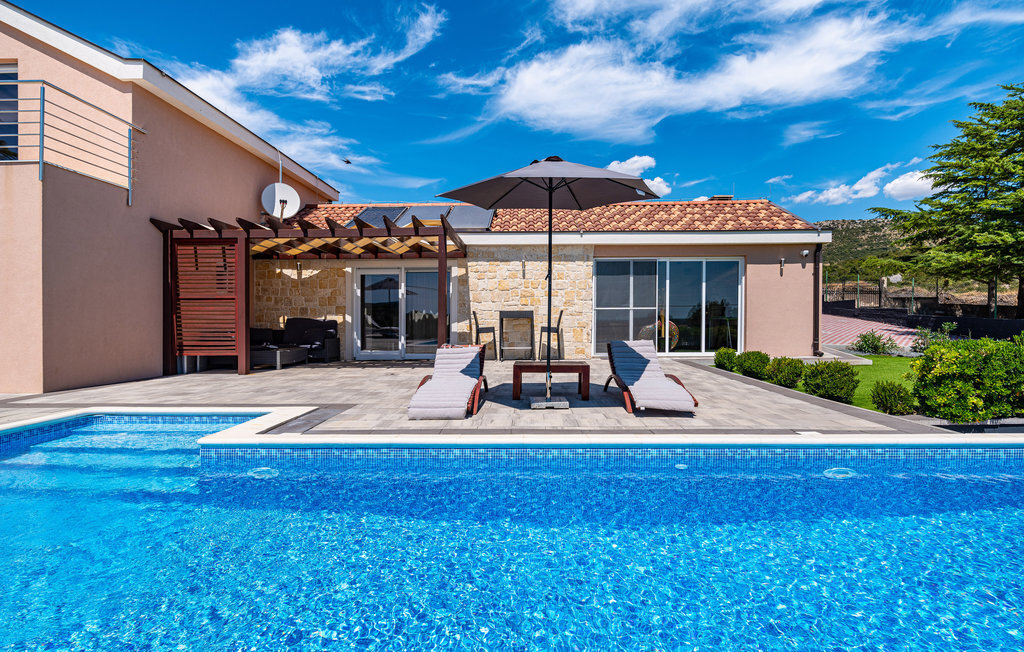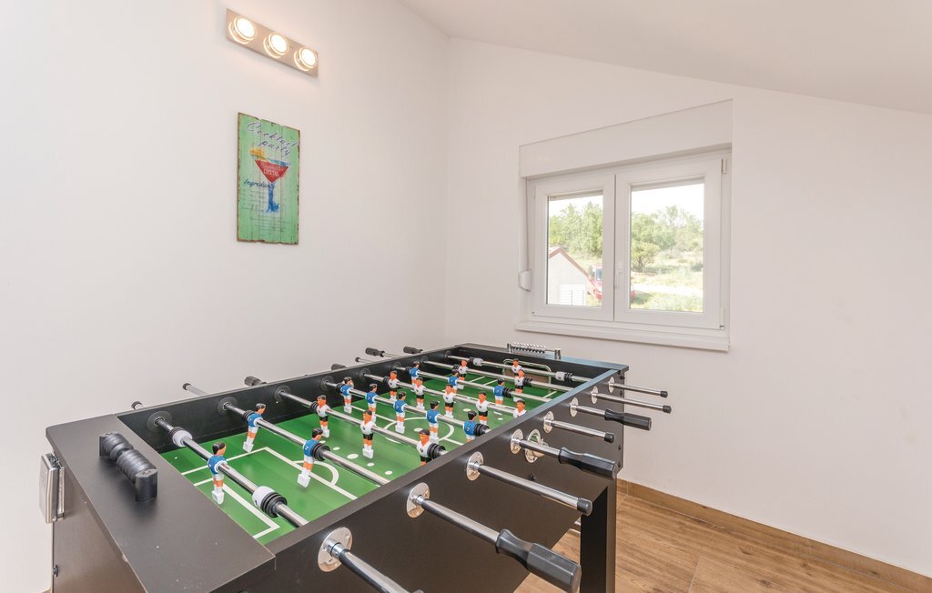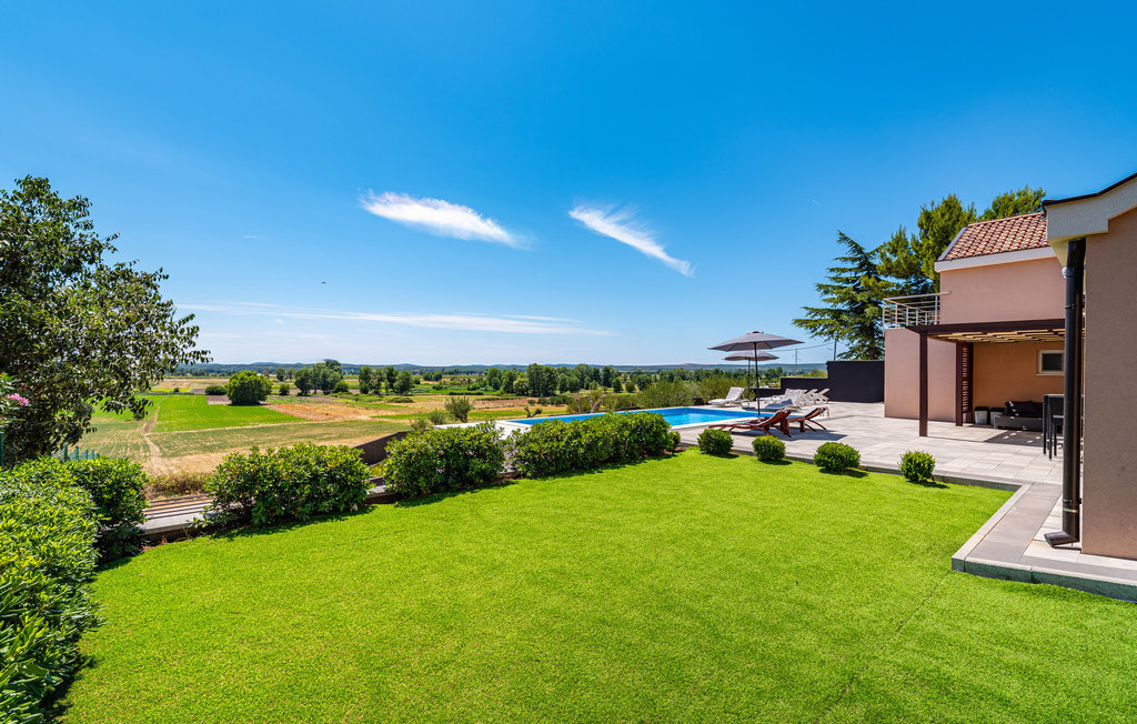 Profitez de vos vacances dans cette magnifique maison de vacances. Elle dispose d'une piscine et d'un sauna, ainsi que d'une vue imprenable sur la campagne et le lac de Vran. Passez des heures agréables à vous réunir sur la terrasse couverte autour d'un verre de vin ou d'un barbecue. Au lac de Vrana, vous pourrez découvrir la réserve ornithologique. Empruntez les pistes cyclables et contemplez l'archipel de Kornati depuis le point de vue de Kamenjak. La ville royale de Biograd et le parc à thème Mirnovec avec diverses attractions et jeux pour les enfants, les jeunes et les familles se trouvent également à proximité.