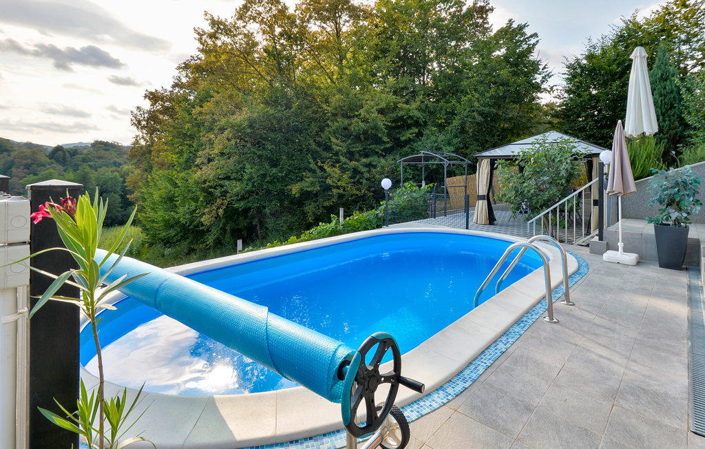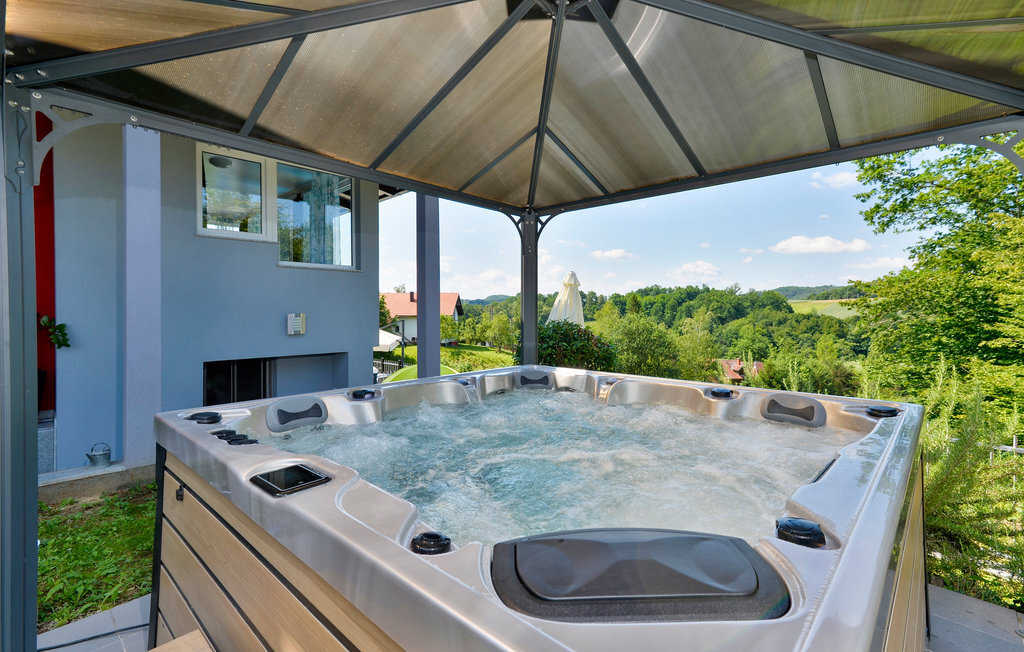 Bien-être à l'extérieur : Location de vacances disposant de chaises-longues et d'un ou plusieurs équipements tels que piscine extérieure, jacuzzi extérieur, lit à baldaquin de jardin etc...