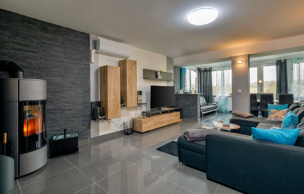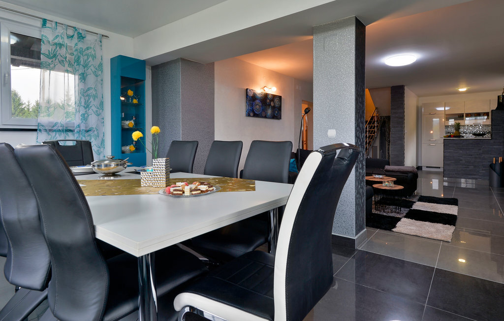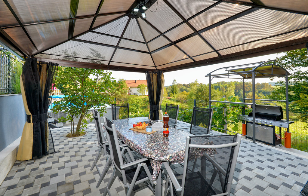 Non loin de Karlovac, sur une petite colline et entourée d'une belle nature, se trouve cette agréable maison de vacances. Une piscine chauffée est à votre disposition et une terrasse avec barbecue se trouve à côté de la piscine. La salle d'activités se trouve à côté de la terrasse, où vous pourrez jouer au baby-foot et aux fléchettes. Une aire de jeux multifonctionnelle ravira les plus petits. Devant la maison, vous pouvez vous détendre sous le petit pavillon dans le jacuzzi avec votre livre préféré. Karlovac est connue comme la ville aux quatre rivières, où vous pouvez vous promener et profiter de la belle nature. Nous vous recommandons également de visiter la capitale Zagreb, qui vaut la peine d'être vue toute l'année et qui est riche en événements.
