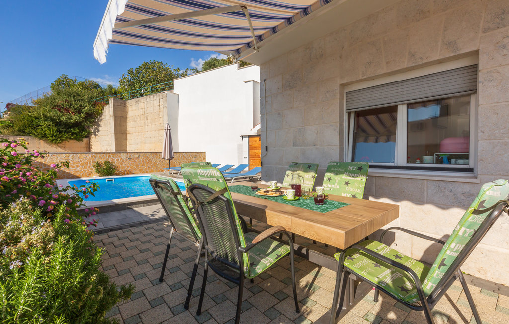 Dans la banlieue de Makarska se trouve cette maison de vacances avec piscine, où vous pourrez passer un agréable séjour. L'aménagement simple mais de bon goût a tout prévu pour des vacances réussies. L'intérieur s'étend sur le rez-de-chaussée et le premier étage, où se trouve uniquement la chambre à coucher avec sortie sur la terrasse. De la terrasse, vous avez une vue magnifique sur la mer, ce qui sera certainement un moment fort de votre séjour. La piscine vous permettra de vous rafraîchir lors des chaudes journées d'été et un barbecue est à votre disposition pour préparer de bons petits plats en soirée avec vos proches. En empruntant la route adjacente, vous atteindrez en quelques minutes de voiture les belles plages de galets et la mer cristalline. Explorez la ville de Makarska, qui invite à une multitude d'événements estivaux pour toute la famille. Explorez cette partie de la côte dalmate et déconnectez-vous, loin du stress de la vie quotidienne.