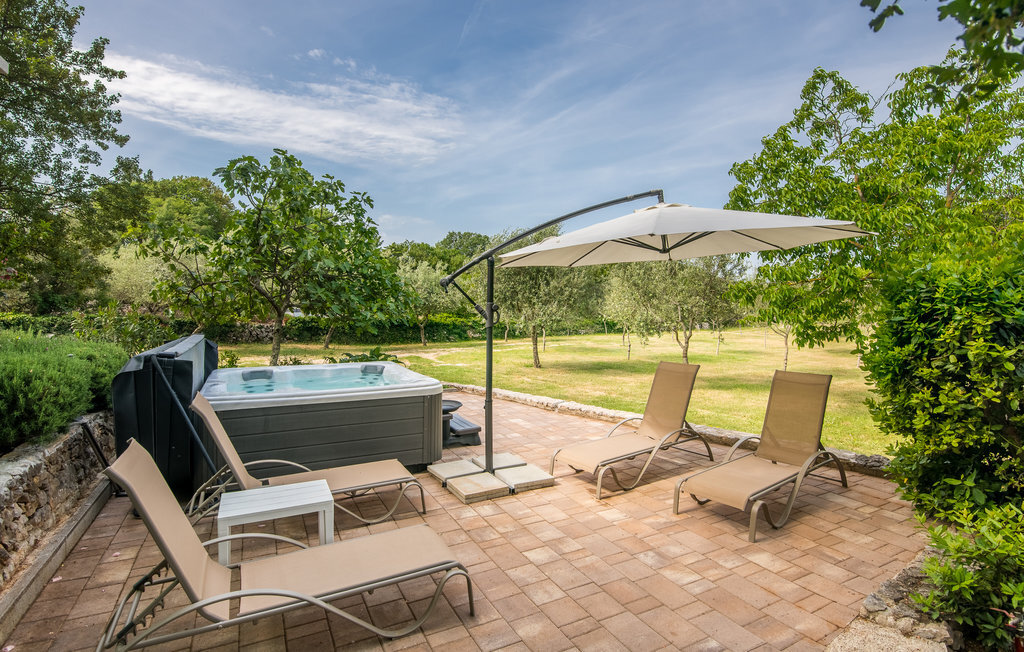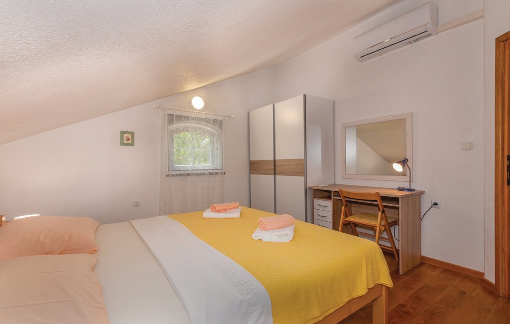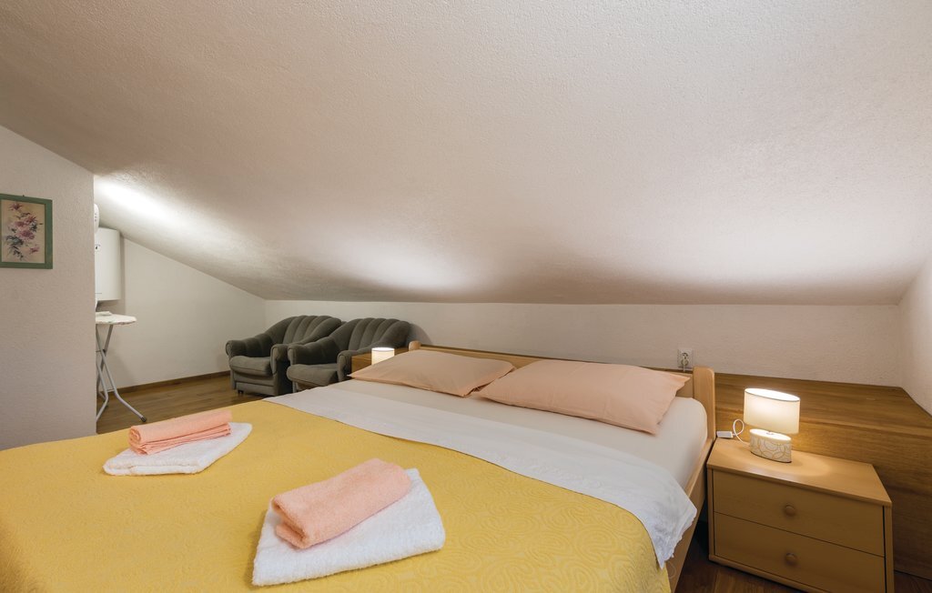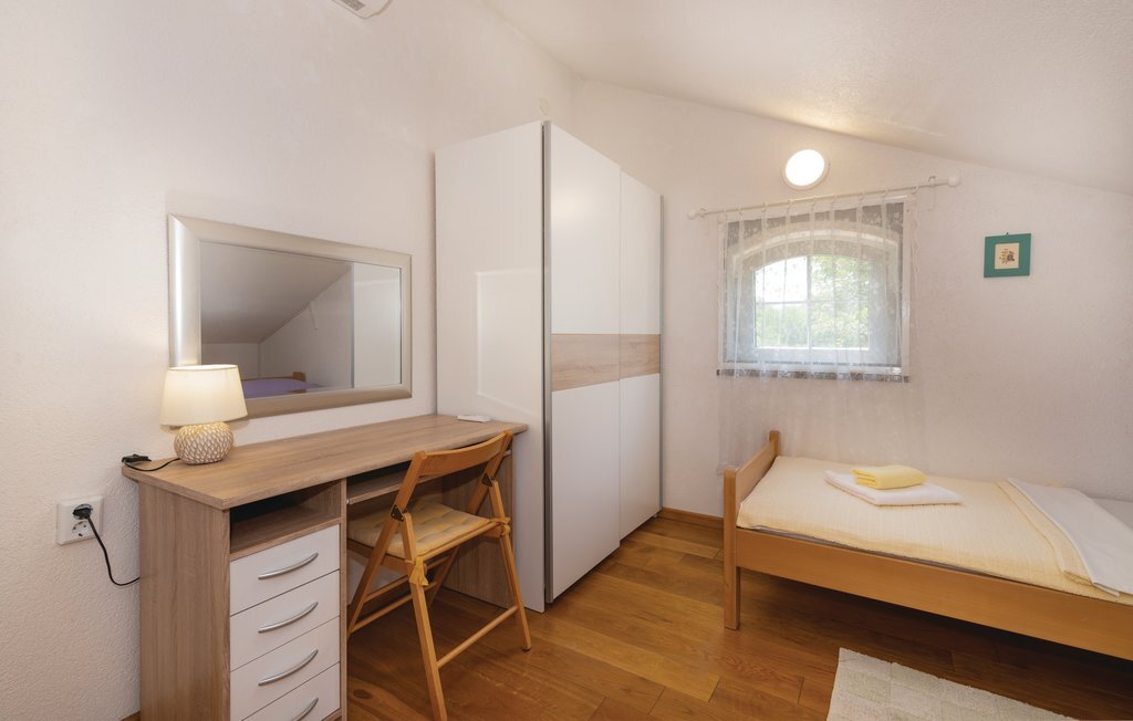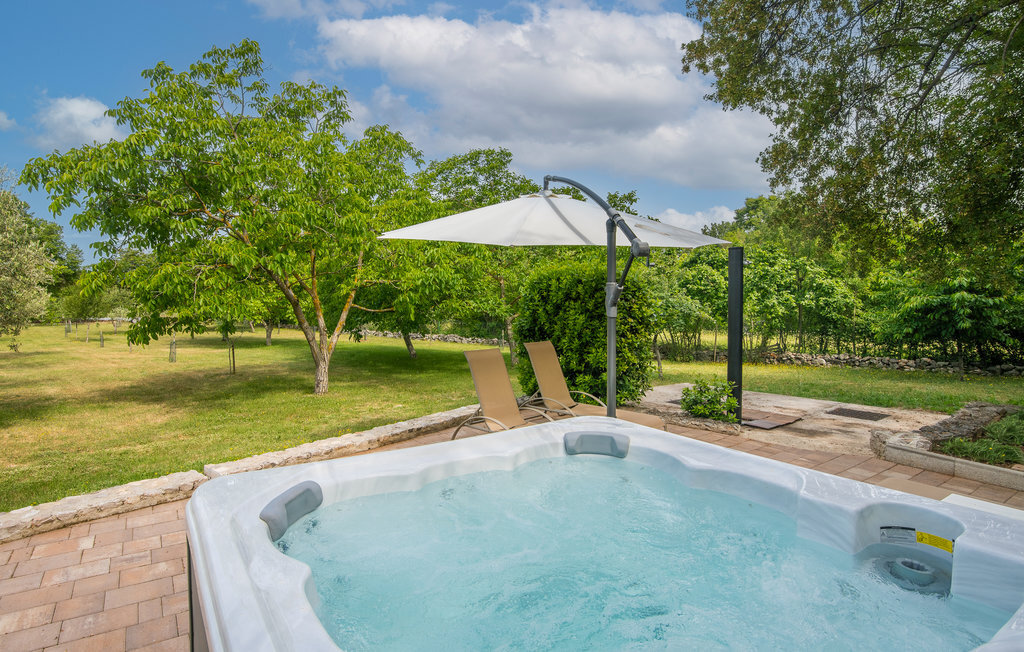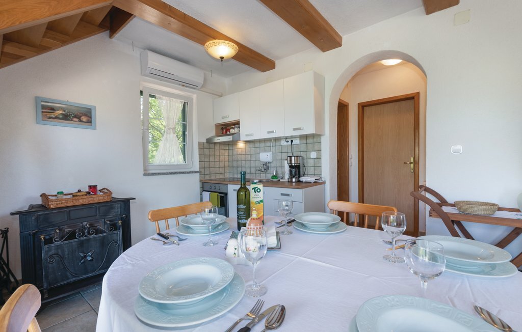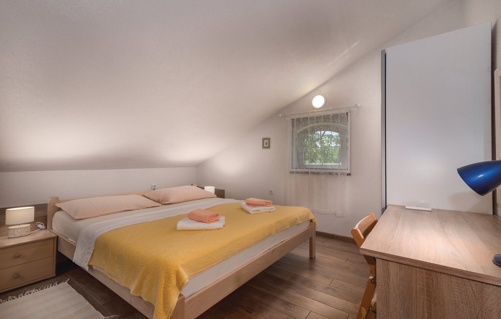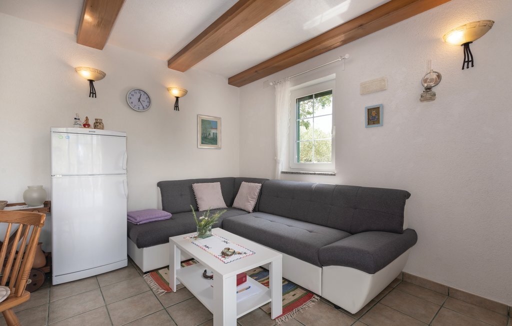 Cette belle maison de vacances se trouve dans le petit village insulaire d'Otrobradi, à proximité de Malinska. Elle se trouve sur un terrain d'environ 3000 m² et est idéale pour les hôtes qui souhaitent se détendre au milieu des oliviers, des arbres fruitiers et de la verdure. Sur le terrain clôturé, vos enfants peuvent jouer sans être dérangés et il y a une balançoire pour nos plus petits hôtes. Au rez-de-chaussée se trouvent le salon, la cuisine et la salle de bain, tandis qu'au premier étage se trouvent la salle de bain, la mini-galerie et deux chambres à coucher avec une hauteur de plafond minimale d'environ 100 cm. Le beau jardin avec terrasse ainsi que le jacuzzi pour 5 personnes, la piste de bowling et les fléchettes ne laissent rien à désirer.