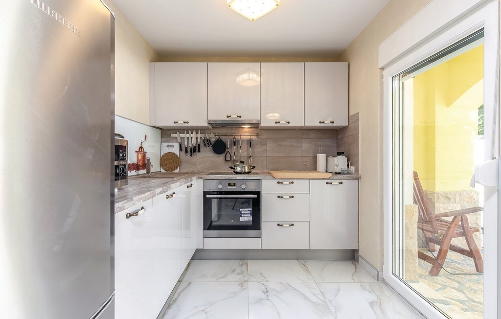 Cette maison de vacances confortable est située dans l'arrière-pays de Novi Vinodolski. Au rez-de-chaussée se trouvent une cuisine avec salon, une chambre à coucher et une salle de bain, tandis qu'à l'étage se trouvent deux chambres à coucher et une salle de bain. Sur le terrain clôturé, vous vous rafraîchissez dans la piscine les jours d'été, puis vous dégustez de délicieux barbecues sur la terrasse couverte. Le village est calme et paisible, tandis que les promenades dans la forêt sont également relaxantes. Quelques minutes en voiture suffisent pour rejoindre la mer et les plages. Pendant les mois d'été, la ville de Novi Vinodolski regorge de divertissements, de sports et d'offres culturelles.