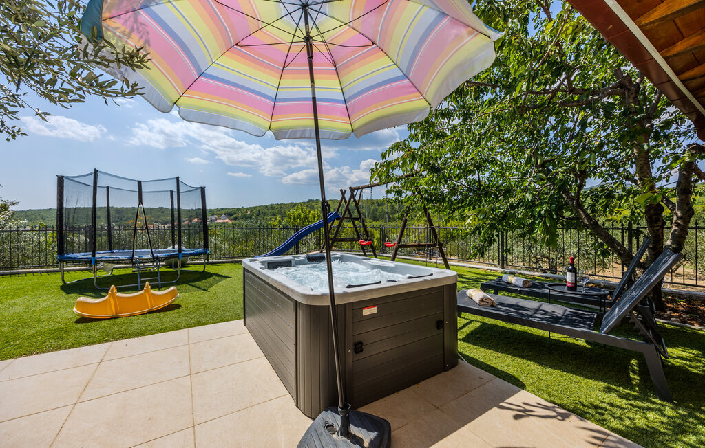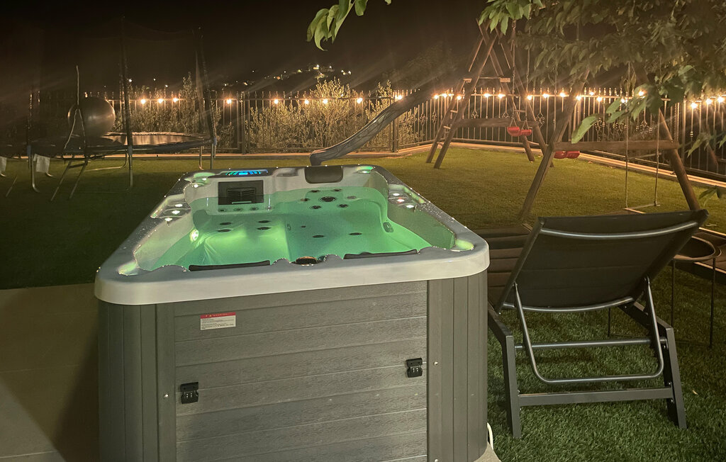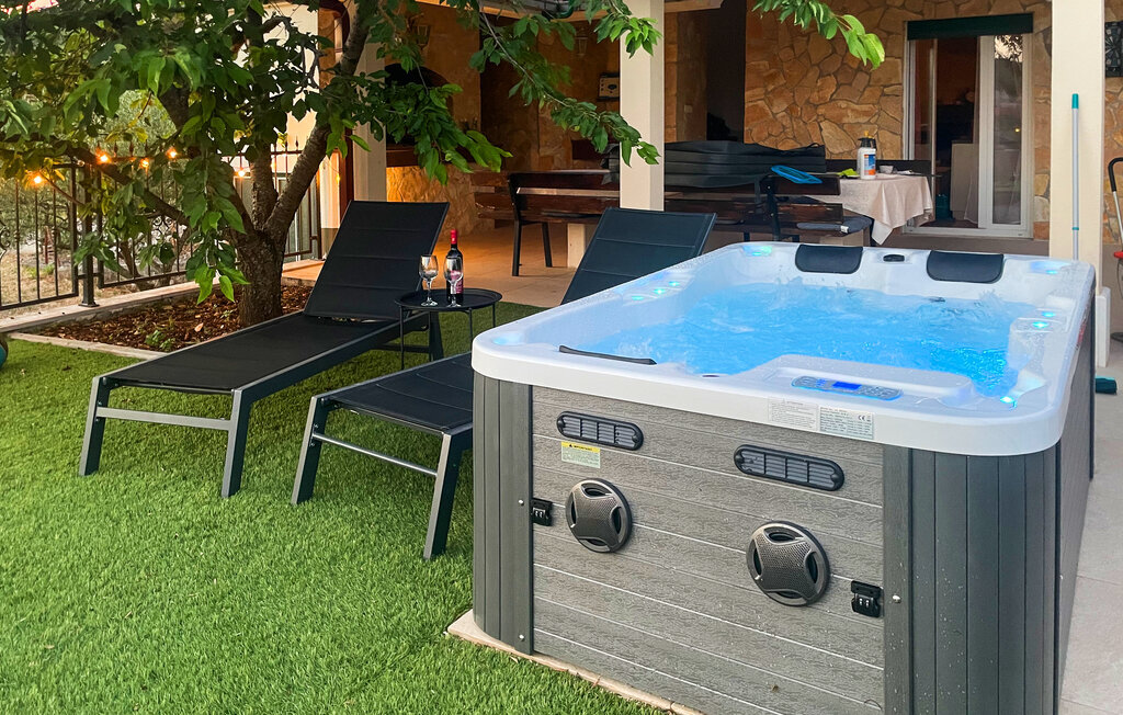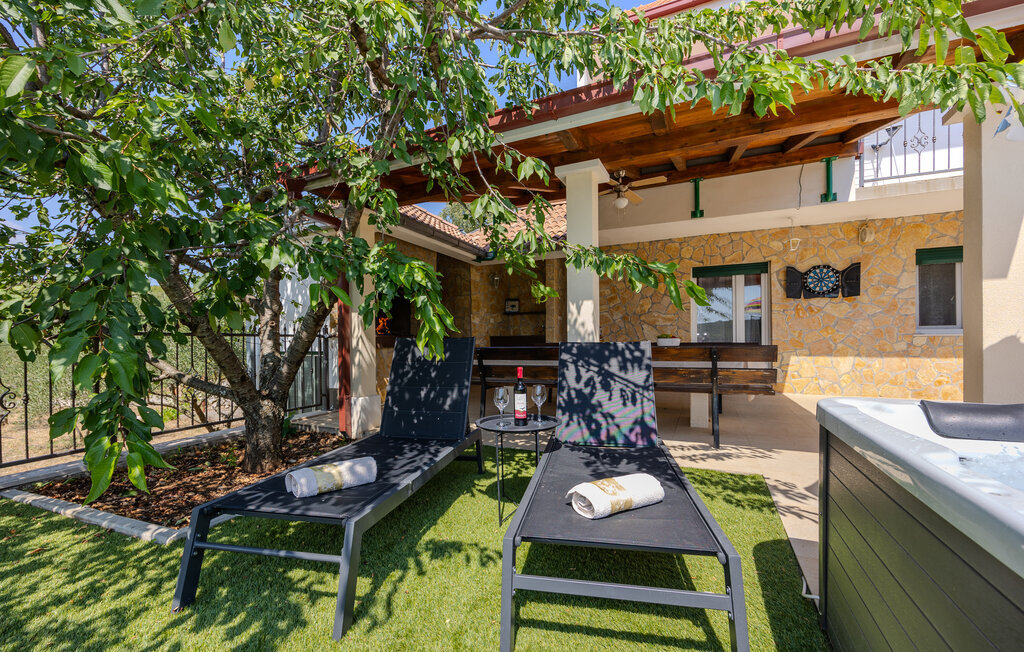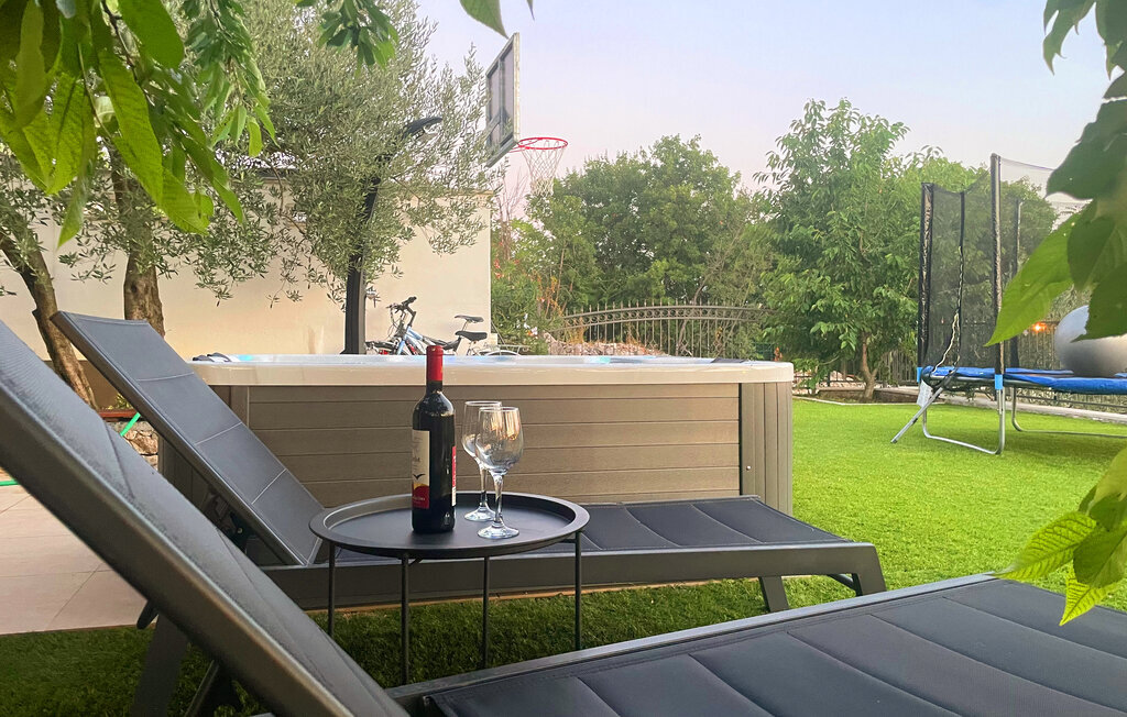 Bien-être à l'extérieur : Location de vacances disposant de chaises-longues et d'un ou plusieurs équipements tels que piscine extérieure, jacuzzi extérieur, lit à baldaquin de jardin etc...