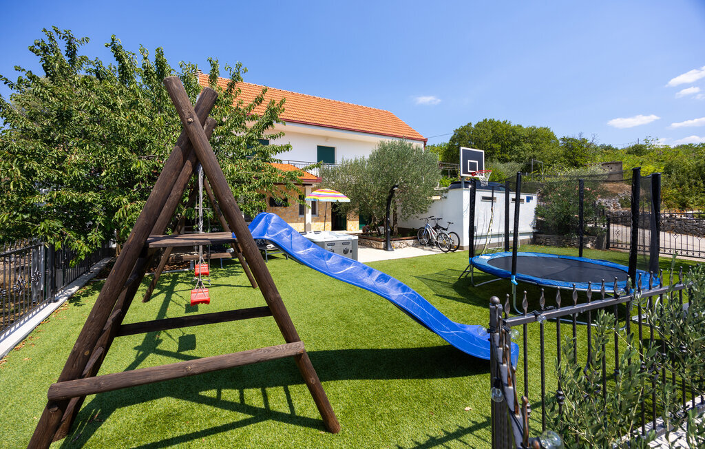 Activités de plein air : Cette location de vacances propose au moins 3 activités de plein air pour toute la famille comme par exemple une table de ping-pong, un trampoline, des boules de pétanques, un panier de basket avec son ballon etc...