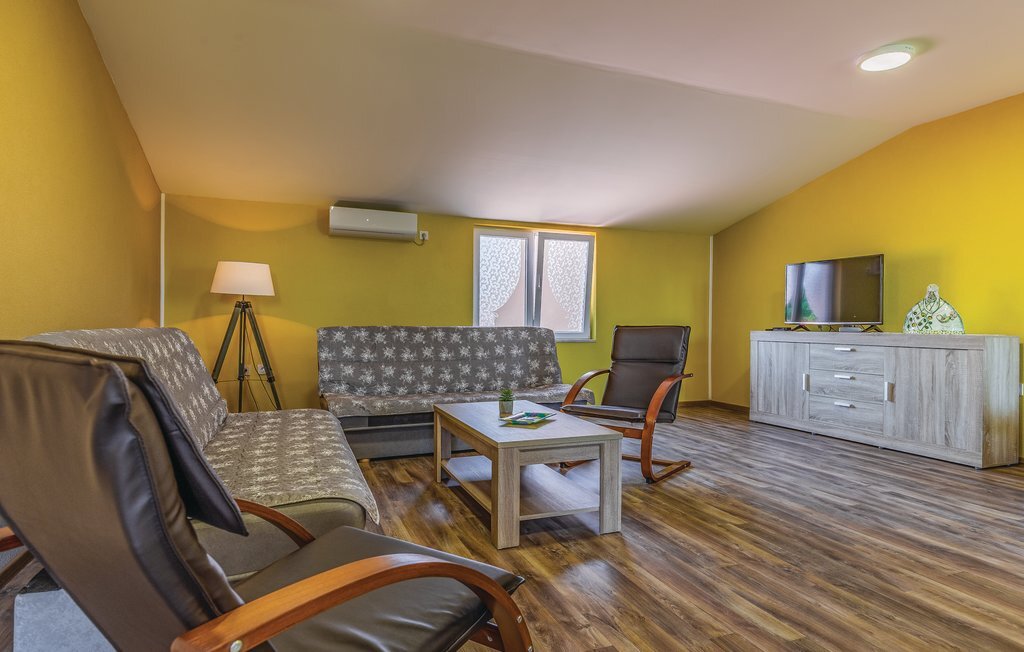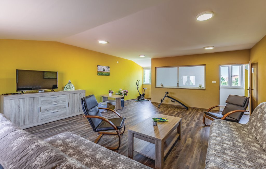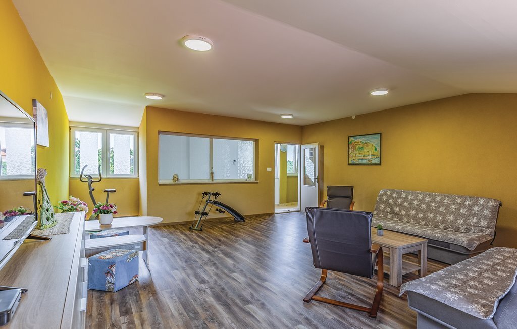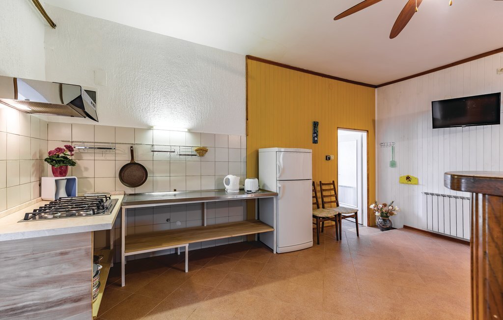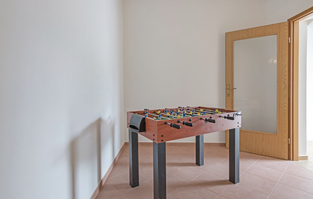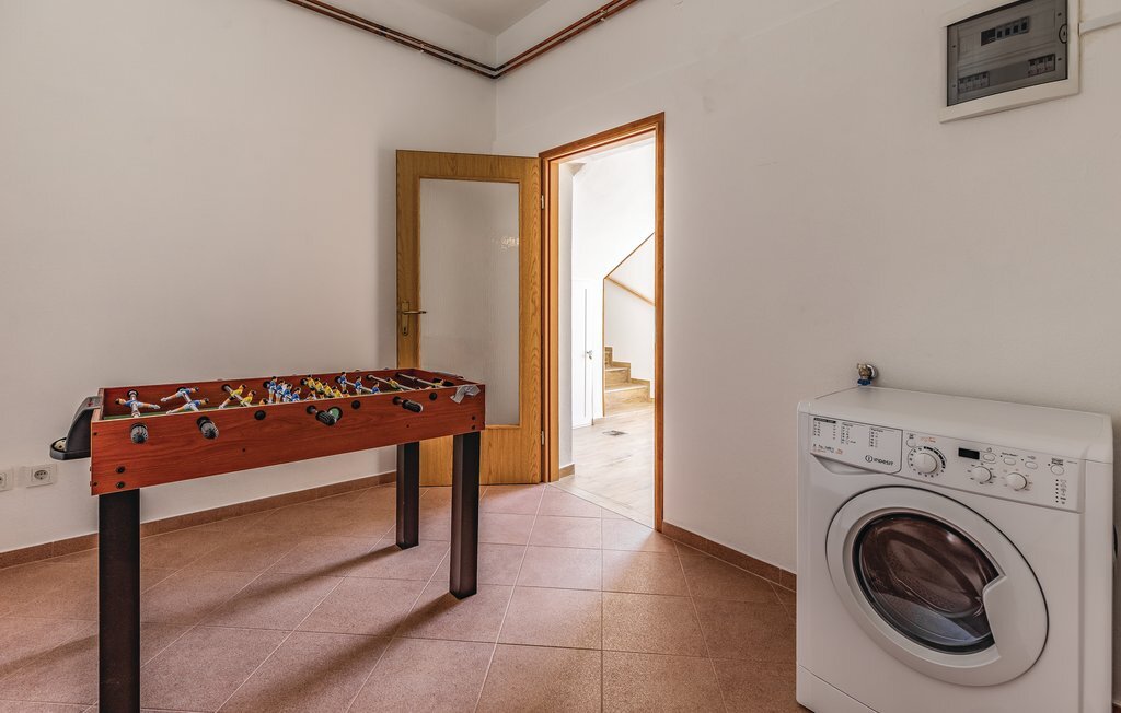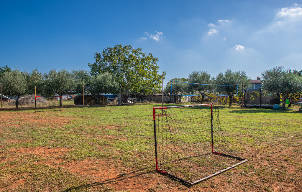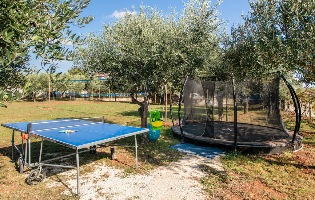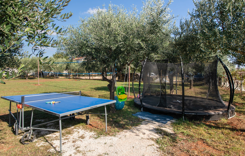 L'intérieur est aménagé de manière fonctionnelle et vous offre tout ce dont vous avez besoin pour passer d'agréables vacances. Passez du temps avec votre famille et vos amis également à l'extérieur, rafraîchissez-vous au bord de la piscine et préparez de délicieux repas sur le barbecue. Des buts de football, un terrain de pétanque, un filet de volley-ball et de badminton, un panier de basket-ball, une table de ping-pong et un trampoline sont à disposition pour une utilisation commune. Des légumes de saison ou de l'huile d'olive peuvent être achetés chez le propriétaire.