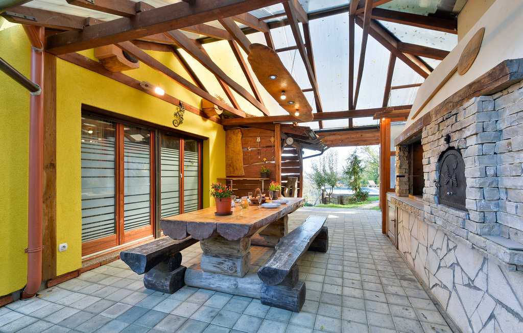 Belle maison de vacances avec piscine, entourée de vignobles, de champs et de vergers. Passez de merveilleuses vacances dans cet environnement paisible. À côté de la maison se trouve une terrasse couverte avec barbecue et un solarium avec piscine, qui vous apportera le rafraîchissement nécessaire lors des chaudes journées d'été. Le rez-de-chaussée se compose de deux salles de séjour et de la cuisine avec coin repas, tandis qu'à l'étage se trouvent trois chambres et une salle de bain. Pendant votre séjour, ne manquez pas de visiter Ludbreg et la ville baroque de Varadin, le bien-être se trouve à Varadinske Toplice, avec de nombreuses offres de bien-être et un parc aquatique pour les jeunes. Pour les amateurs de plaisir et d'adrénaline, il y a également un parc d'adrénaline à proximité.