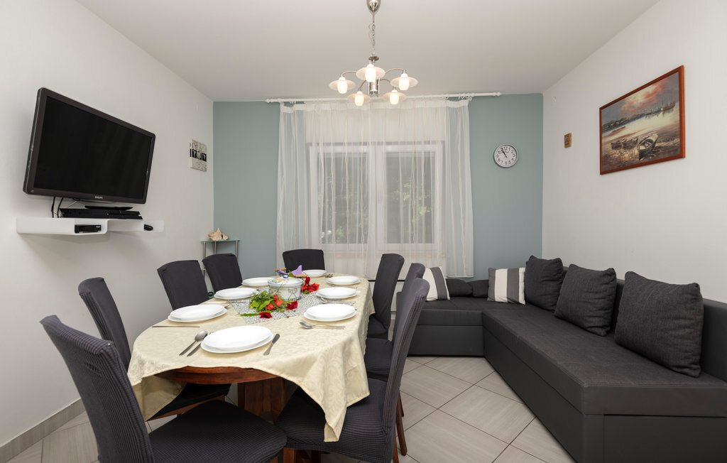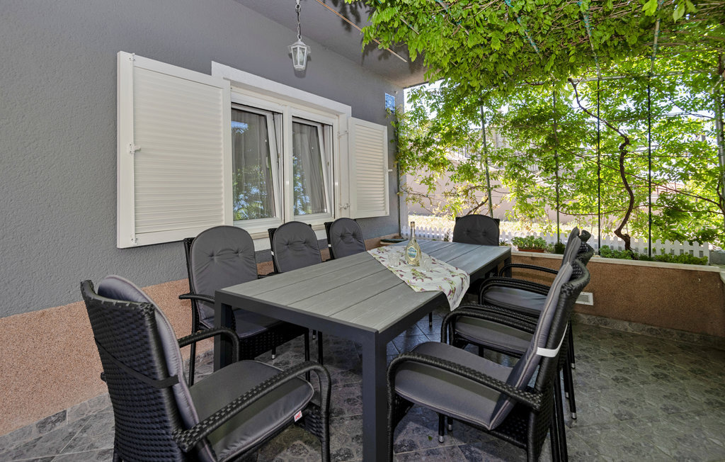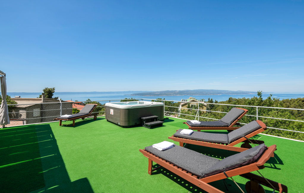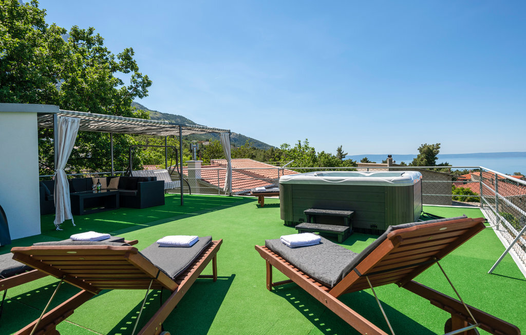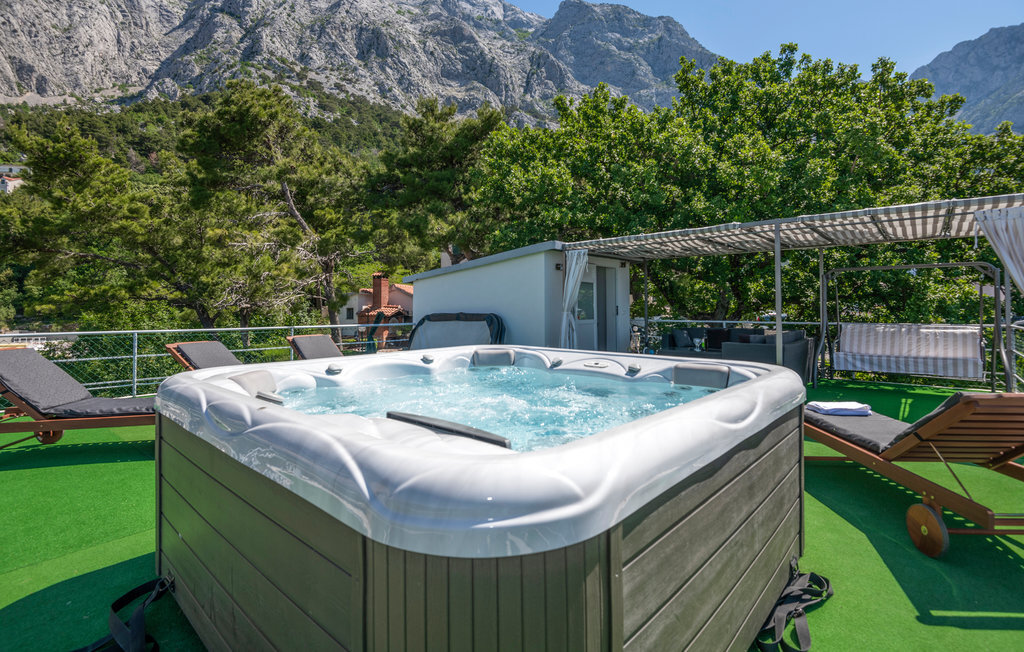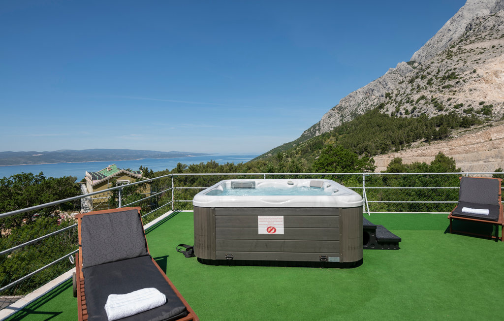 Au pied de la montagne Biokovo, dans le beau village historique de Bast, près de Baka Voda, se trouve cette maison de vacances joliment aménagée et bien équipée. Elle se compose d'un rez-de-chaussée et d'un premier étage, tandis que vous trouverez une terrasse avec jacuzzi sur le toit. Il est agréable de s'y détendre tout en profitant de la vue sur la mer et les îles. Au rez-de-chaussée, vous trouverez également une cuisine extérieure avec un barbecue et une autre terrasse meublée. La ville de Makarska avec ses nombreux contenus se trouve à seulement 10 kilomètres, tandis que la belle localité de Baka Voda n'est qu'à 4 km de Bast.