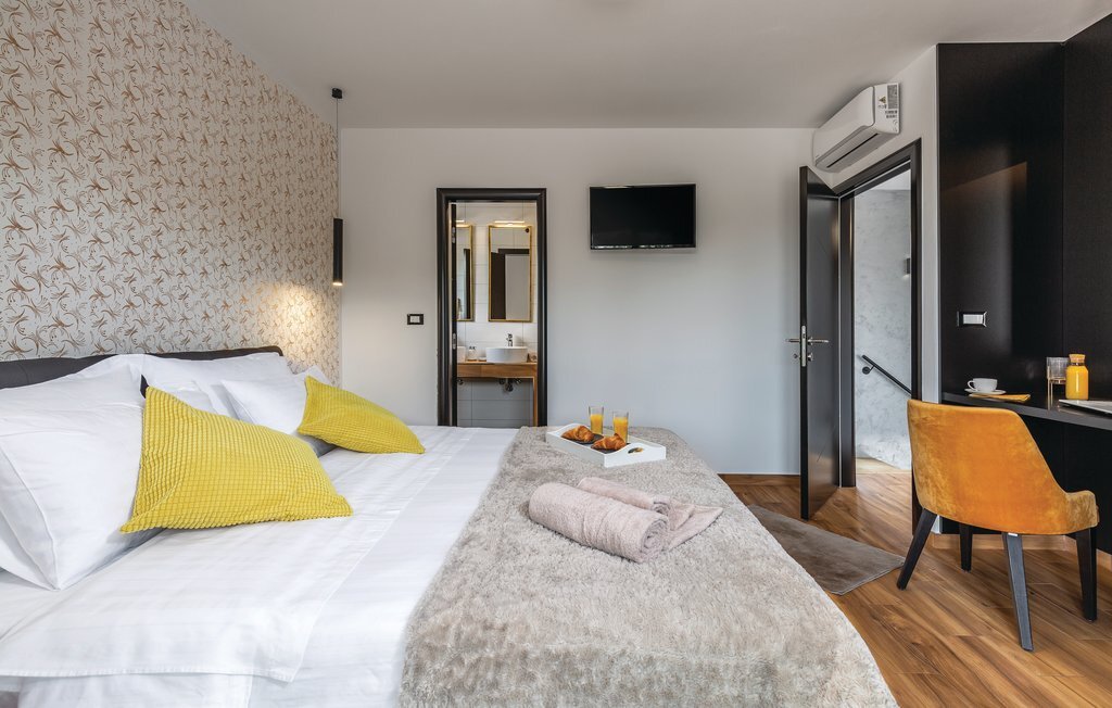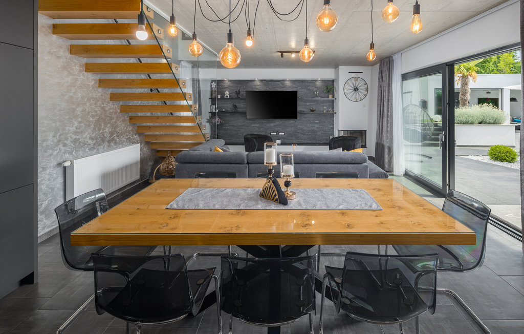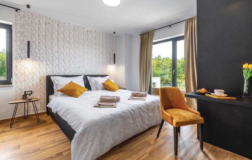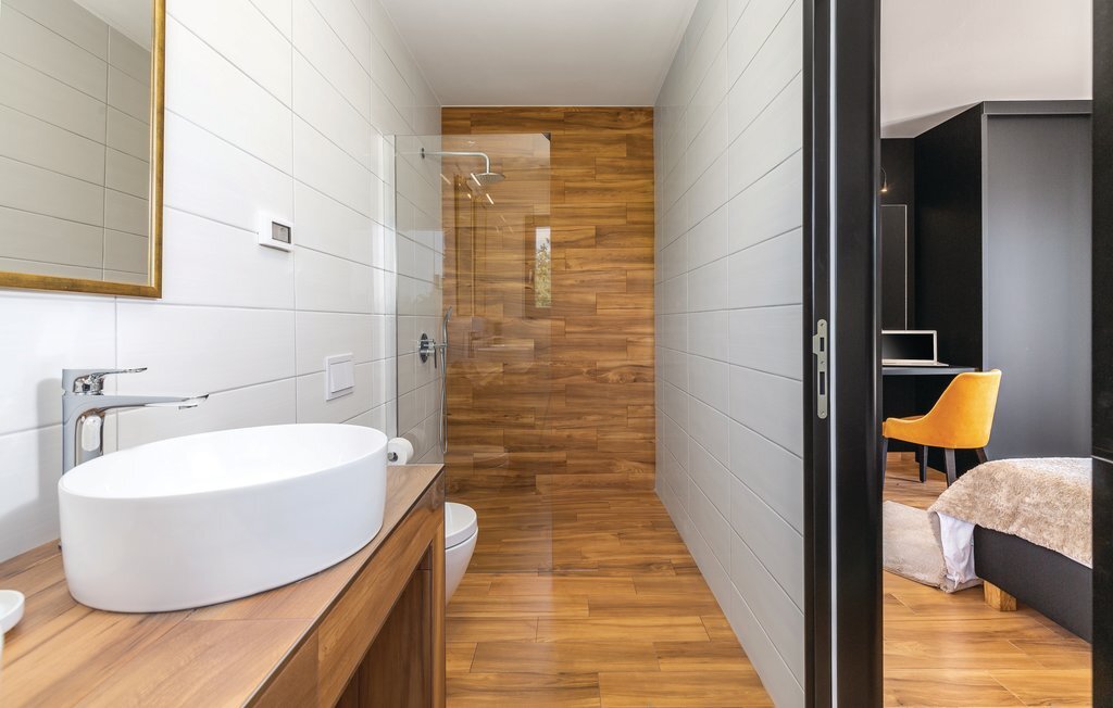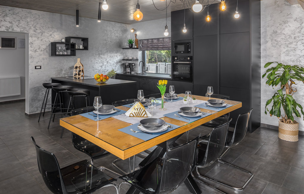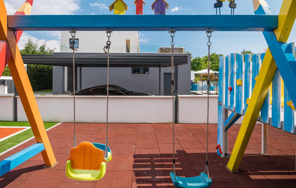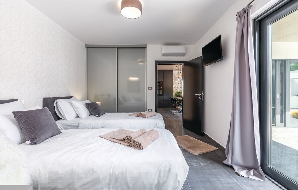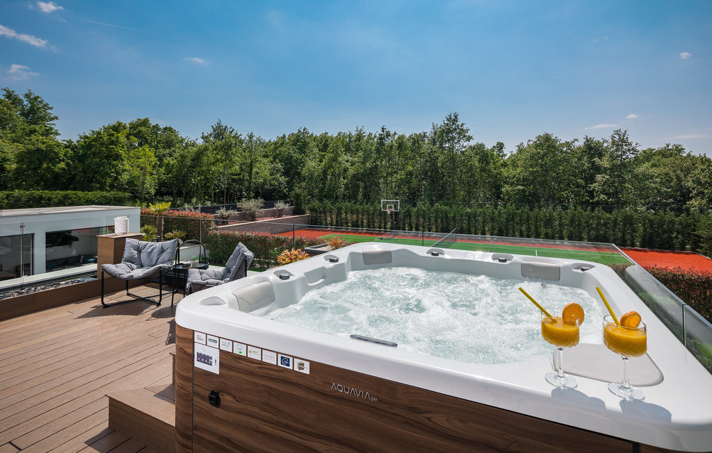 Cette impressionnante villa à l'architecture et au design modernes offre un confort maximal à ses hôtes. Cette belle villa n'est pas seulement agréable à l'œil, elle séduit également par sa qualité et sa fonctionnalité. Elle est située à l'intérieur de l'Istrie, entourée de verdure, sur un terrain clôturé d'environ 1000 m², qui offre beaucoup de calme et d'intimité. L'intérieur s'étend sur le rez-de-chaussée et le premier étage. Les espaces ouverts se composent d'un grand salon avec cheminée ainsi que d'une cuisine et d'une salle à manger, tandis que chaque chambre dispose de sa propre salle de bain avec climatisation et télévision. D'immenses baies vitrées inondent les pièces de lumière et donnent directement accès aux terrasses orientées vers le jardin et la piscine. Dans le jardin, une piscine rafraîchissante avec une zone de bronzage et une cuisine extérieure, à côté de laquelle se trouve un salon confortable, vous attendent. Les petits hôtes ne s'ennuieront pas non plus dans cette maison de rêve, car de nombreuses installations de jeux leur permettront de s'amuser.