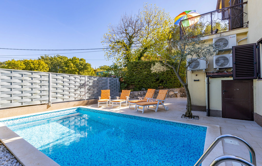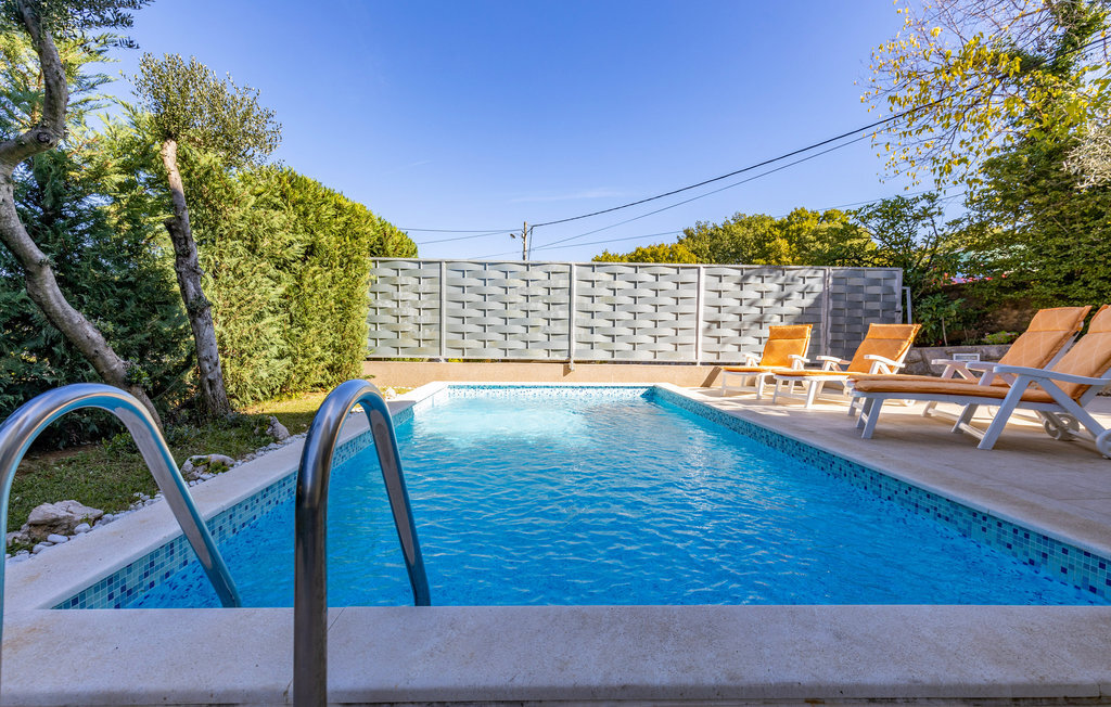 Cette belle maison de vacances avec piscine se trouve dans le petit village de Soline sur l'île de Krk. Les deux étages ont des escaliers extérieurs. Au rez-de-chaussée, il y a un salon avec cuisine et salle à manger, une chambre à coucher ainsi qu'une salle de loisirs avec, vélo elliptique Orbitrek, tennis de table et picado et à l'étage, il y a 3 autres chambres à coucher, la chambre 3 sert de passage. Le jardin magnifiquement aménagé et clôturé, où les enfants peuvent également jouer en toute sécurité, dispose d'une piscine extérieure, d'une terrasse couverte et d'une terrasse ouverte avec barbecue. La plage n'est qu'à quelques minutes à pied en descendant. La particularité de cette plage est qu'elle contient des boues médicinales réputées. L'île de Krk est une destination variée en raison de son riche patrimoine historique et culturel, de ses célèbres vignobles et dégustations de vin ainsi que de ses excellents restaurants. Profitez des nombreuses possibilités de vacances actives : promenades, pistes cyclables, wakeboard à Puntu, karting à Krk et bien plus encore.