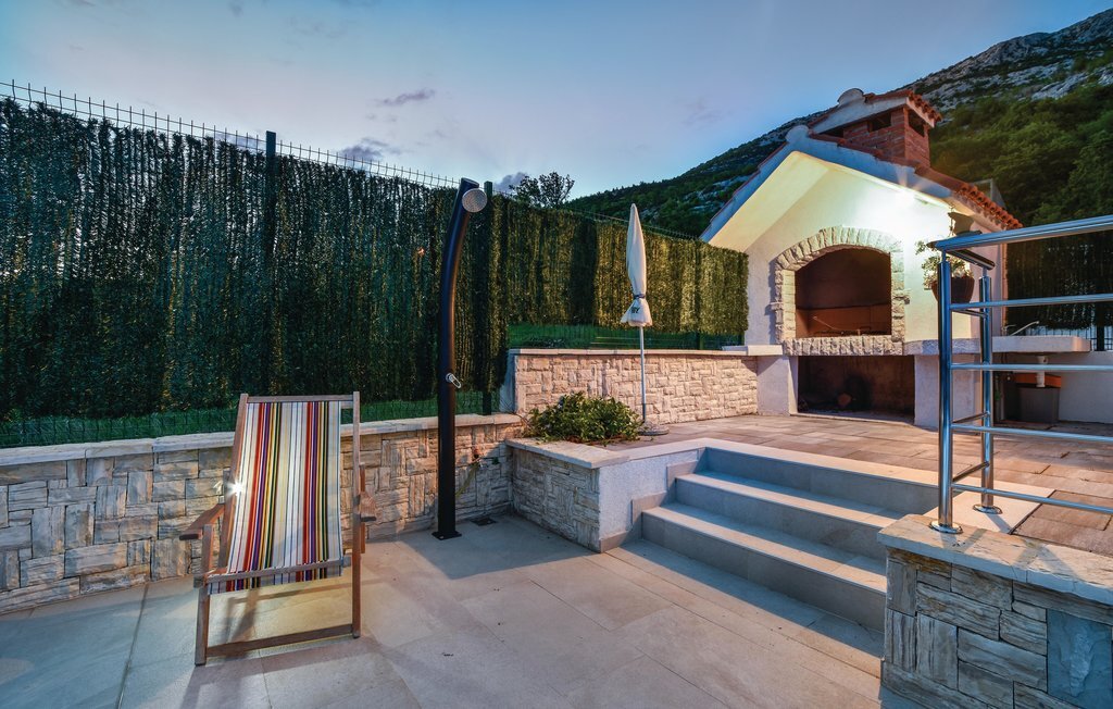 Passez vos vacances loin du stress quotidien et de l'agitation de la ville dans cette maison de vacances joliment aménagée. La maison se trouve dans un petit village tranquille et se compose de trois chambres à coucher, d'une salle de bains, de toilettes et d'une cuisine avec salon. Un grand terrain est à votre disposition et vous pourrez vous rafraîchir dans la piscine pendant les chaudes journées d'été. Vous pouvez préparer vos plats préférés au barbecue. Nous vous recommandons également de visiter la ville d'Omis où, pendant les mois d'été, vous trouverez une multitude d'activités et de divertissements pour petits et grands. Le centre-ville de Split vaut également la peine d'être vu, avec ses bâtiments anciens qui dégagent un charme particulier.