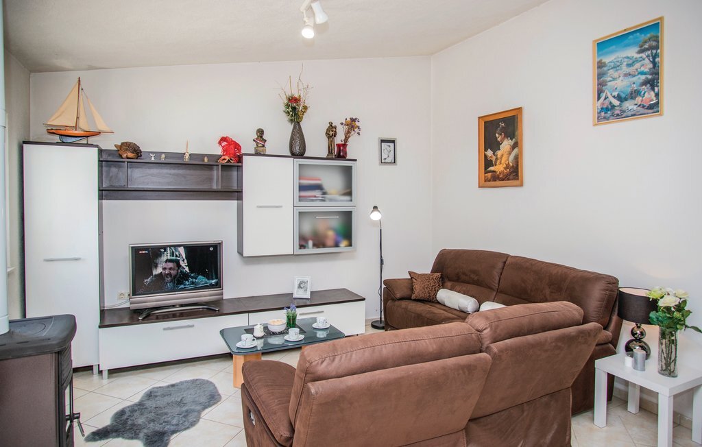 Cette belle maison de vacances est située dans le petit village de Kreevo, dans l'arrière-pays d'Omi. Le logement se compose d'une cuisine, d'un salon, d'une salle de bain et de trois chambres (dont une est une chambre de passage). À côté de la maison se trouvent une piscine qui peut être chauffée et couverte si nécessaire, un sauna et une autre salle de bains. Passez de bons moments en famille ou entre amis sur la terrasse à côté de la piscine, où vous pourrez également préparer de délicieux barbecues. Vous trouverez des plages de galets pour vous baigner ou faire du rafting sur la rivière Cetina, à environ 3 km, ainsi que des plages de galets en bord de mer à Omi, à environ 15 km.