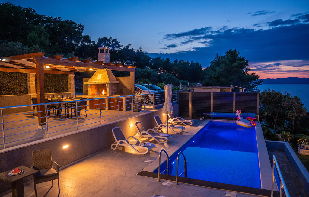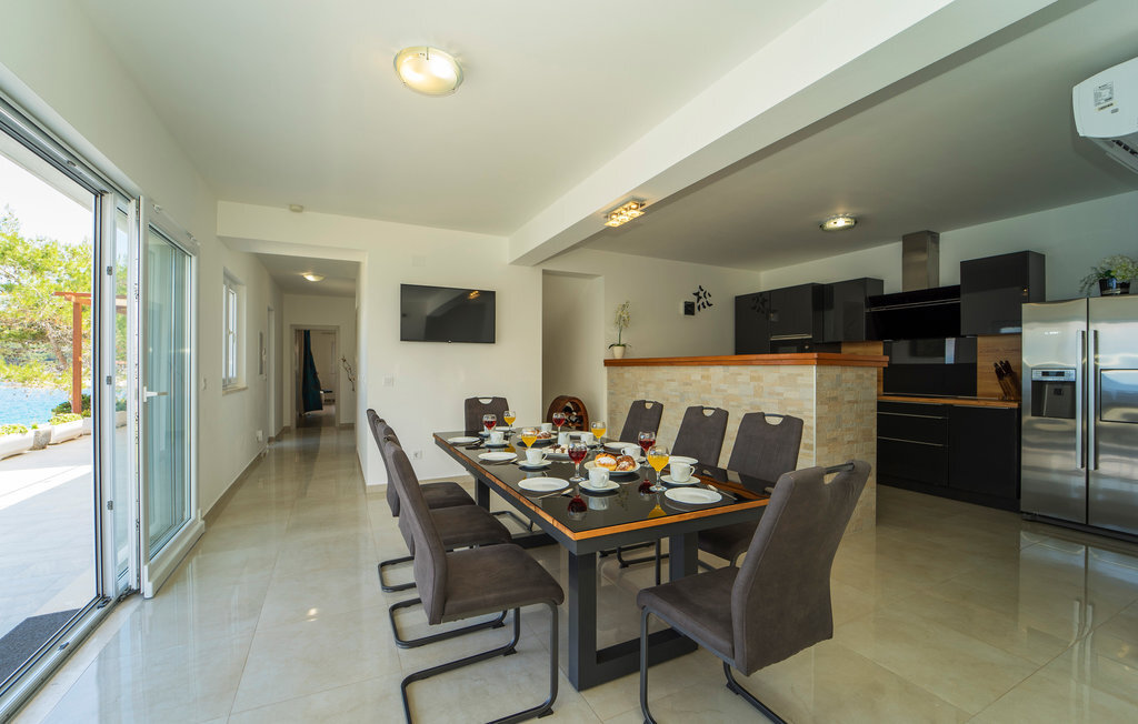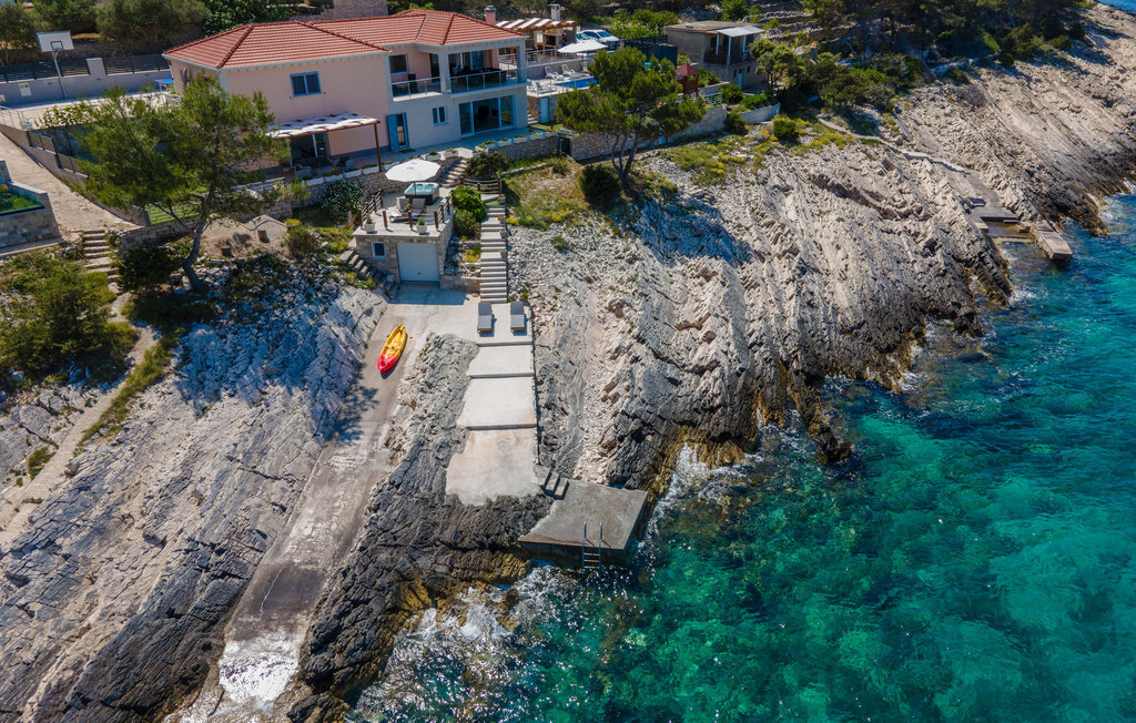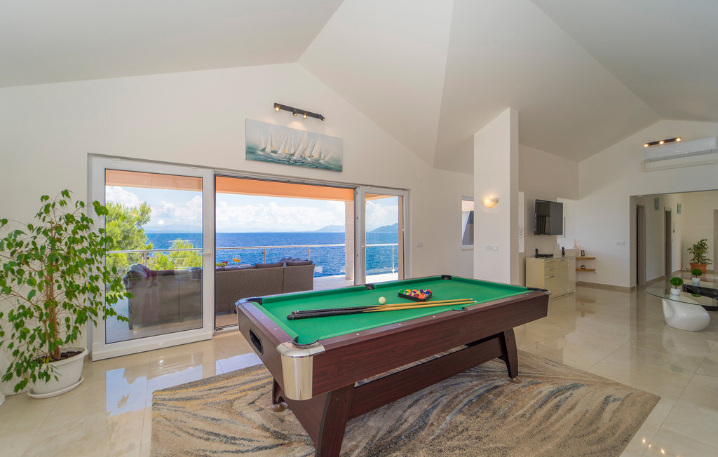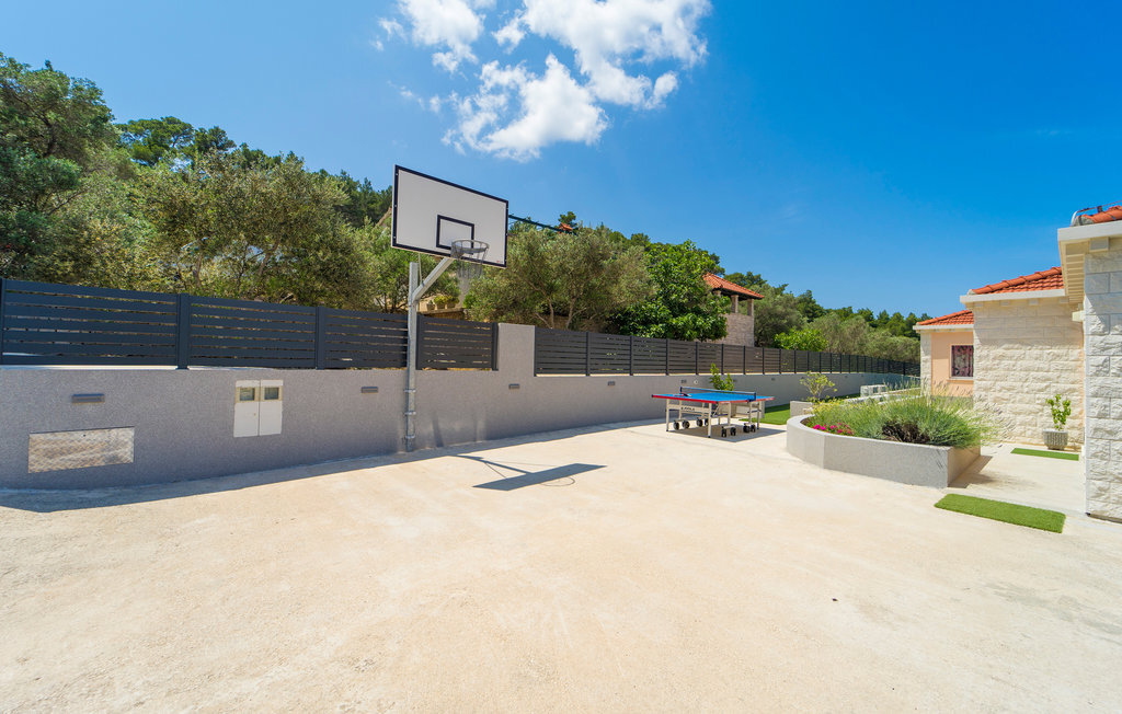 Passez vos vacances en Dalmatie centrale, sur la fabuleuse île de Korcula. Cette maison de vacances moderne, très bien située en bord de mer, est votre chance de vivre une expérience unique. Les intérieurs spacieux sont aménagés avec style et équipés pour des vacances agréables. La maison offre le confort de quatre chambres, d'un salon ouvert et de quatre salles de bains. Il y a une salle avec des jeux vidéo et une salle de fitness est également à disposition. Profitez de la magnifique vue panoramique tout en nageant dans la piscine ou en préparant un dîner romantique sur la terrasse avec barbecue. Pour les plus petits, il y a un grand bac à sable, un toboggan et une balançoire. Nous sommes sûrs que vous ramènerez d'ici de nombreuses photos de convivialité autour de la piscine ou du barbecue, de journées passées à la mer, de compétitions de ping-pong ou de billard et peut-être de poissons fraîchement pêchés. En dehors de cette oasis, l'île de Korcula est l'endroit idéal pour explorer la nature, la gastronomie et la vie nocturne. Découvrez également les autres localités de l'île, comme Blato, Vela Luka ou le petit village de Prigradica. Ressentez le parfum de la forêt de pins et profitez de l'ambiance méditerranéenne. Un chemin de terre de 300 m mène à l'objet.