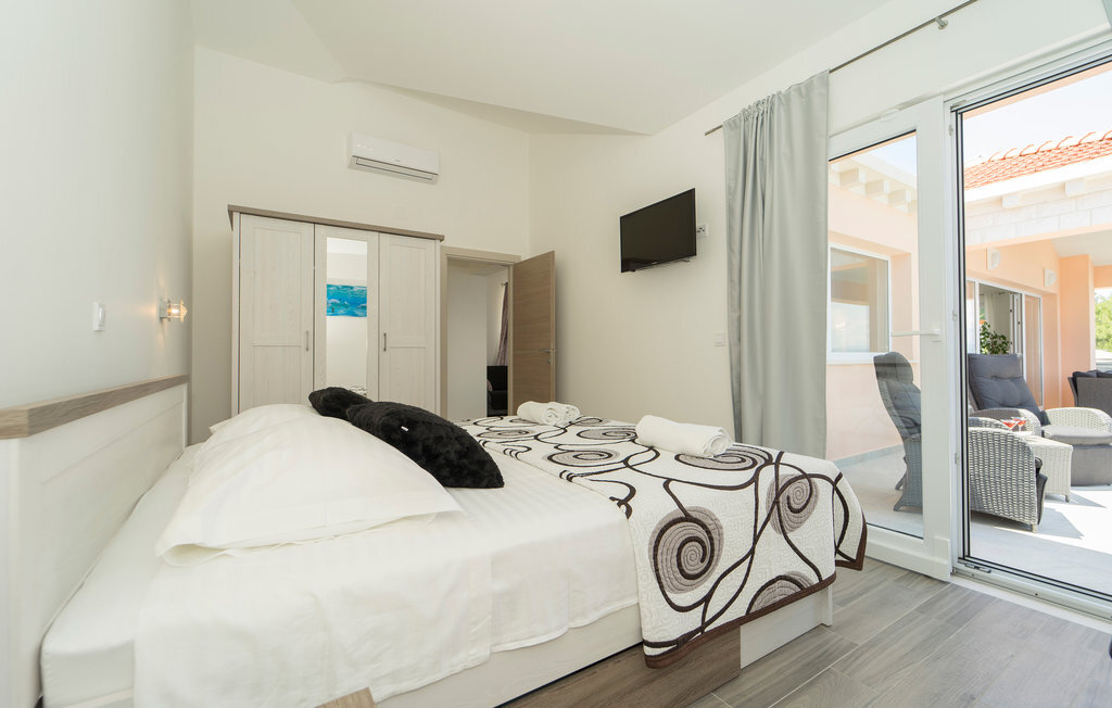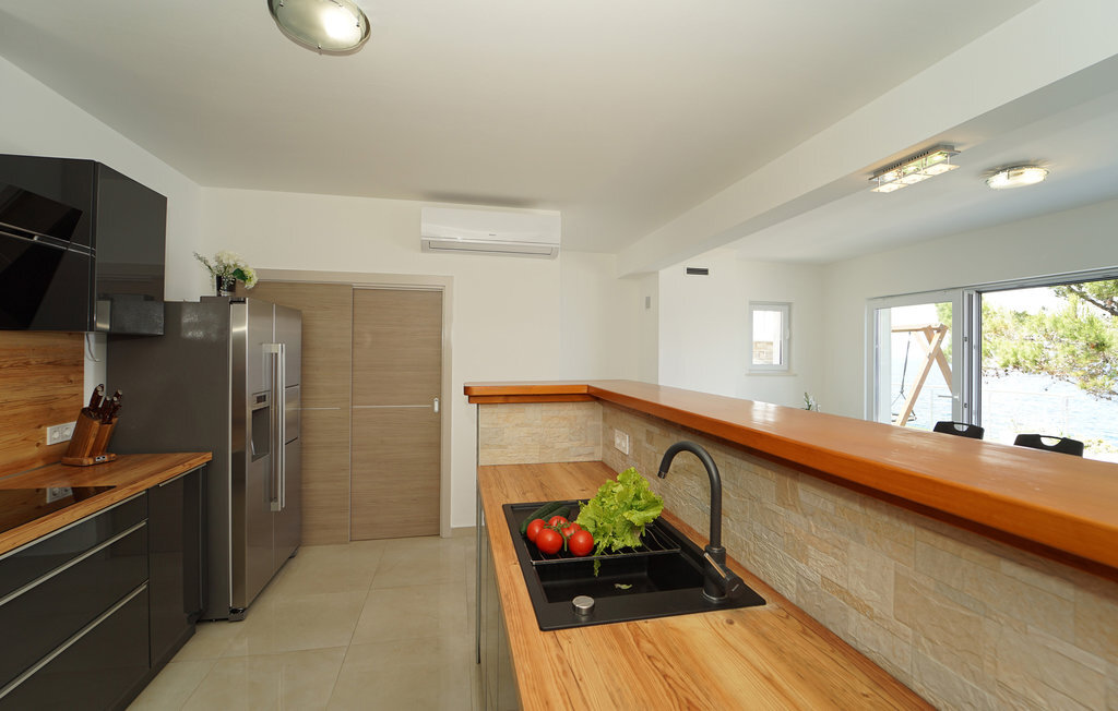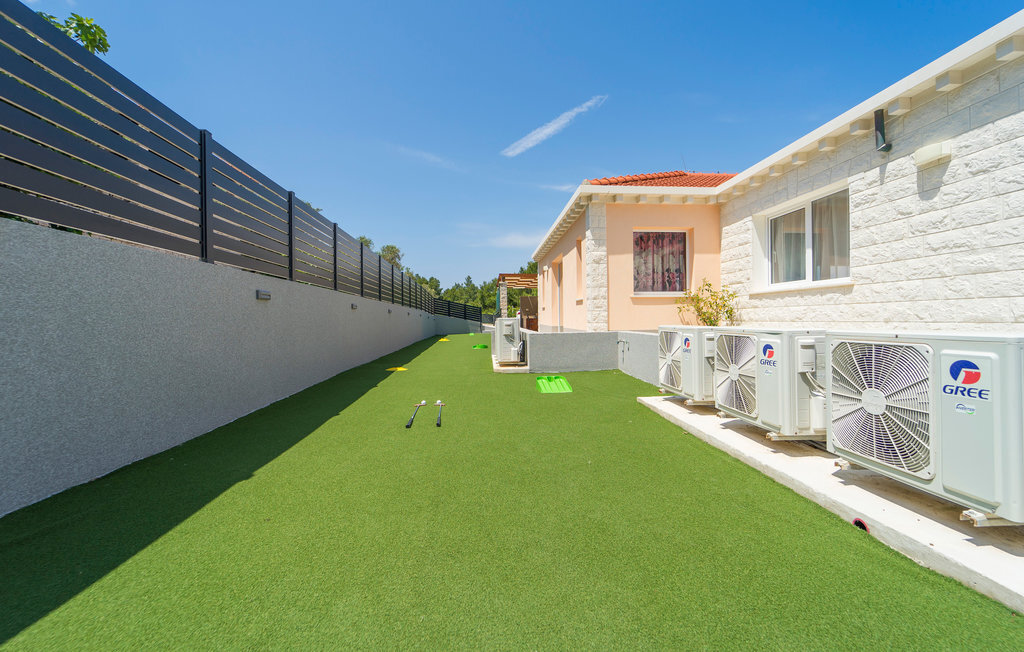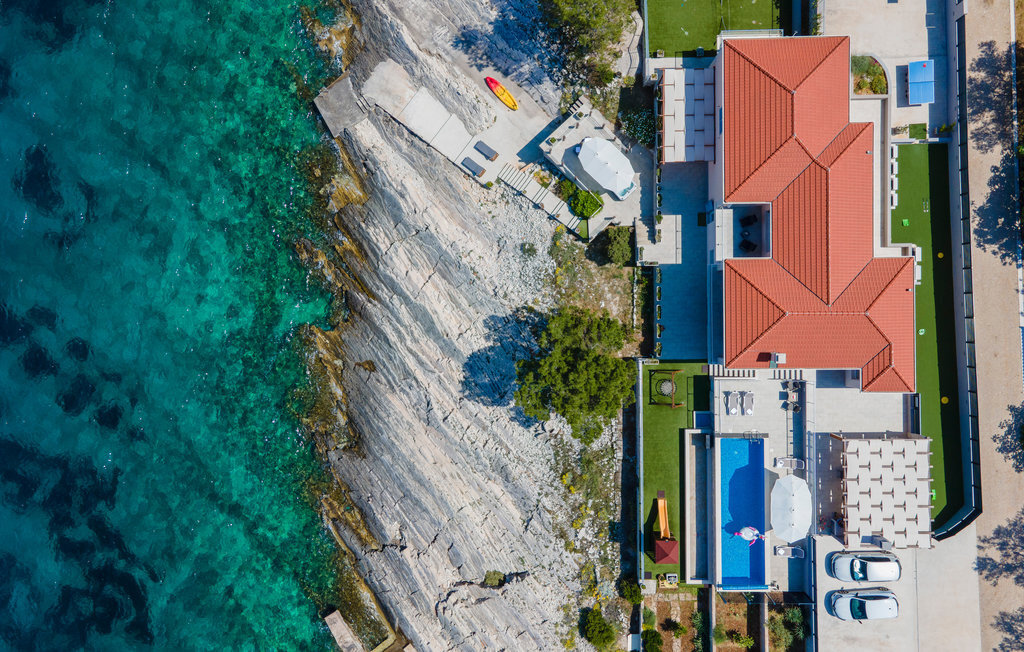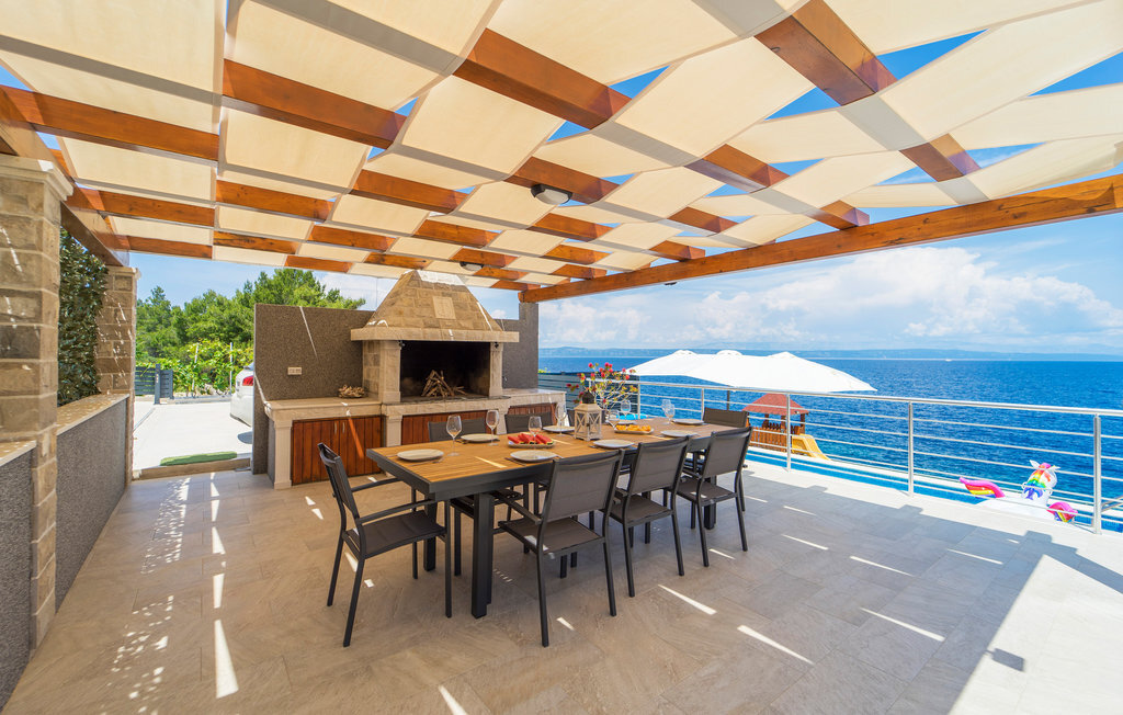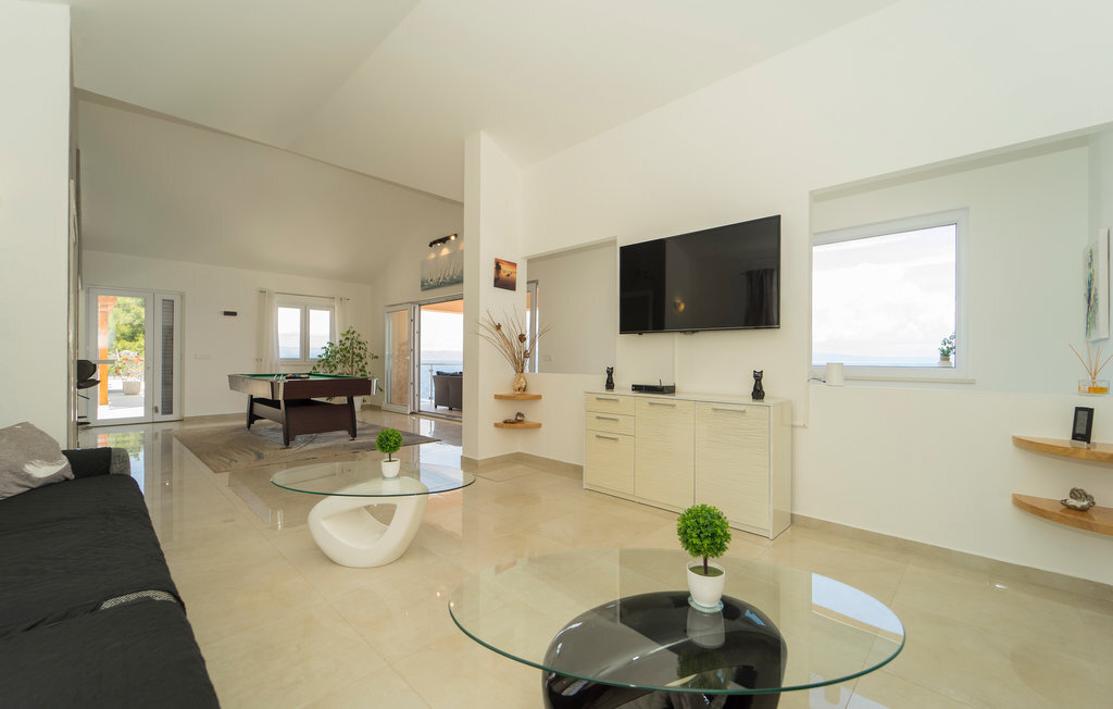 Passez vos vacances en Dalmatie centrale, sur la fabuleuse île de Korcula. Cette maison de vacances moderne, très bien située en bord de mer, est votre chance de vivre une expérience unique. Les intérieurs spacieux sont aménagés avec style et équipés pour des vacances agréables. La maison offre le confort de quatre chambres, d'un salon ouvert et de quatre salles de bains. Il y a une salle avec des jeux vidéo et une salle de fitness est également à disposition. Profitez de la magnifique vue panoramique tout en nageant dans la piscine ou en préparant un dîner romantique sur la terrasse avec barbecue. Pour les plus petits, il y a un grand bac à sable, un toboggan et une balançoire. Nous sommes sûrs que vous ramènerez d'ici de nombreuses photos de convivialité autour de la piscine ou du barbecue, de journées passées à la mer, de compétitions de ping-pong ou de billard et peut-être de poissons fraîchement pêchés. En dehors de cette oasis, l'île de Korcula est l'endroit idéal pour explorer la nature, la gastronomie et la vie nocturne. Découvrez également les autres localités de l'île, comme Blato, Vela Luka ou le petit village de Prigradica. Ressentez le parfum de la forêt de pins et profitez de l'ambiance méditerranéenne. Un chemin de terre de 300 m mène à l'objet.