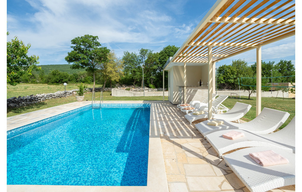 Bien-être à l'extérieur : Location de vacances disposant de chaises-longues et d'un ou plusieurs équipements tels que piscine extérieure, jacuzzi extérieur, lit à baldaquin de jardin etc...