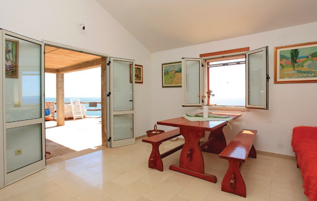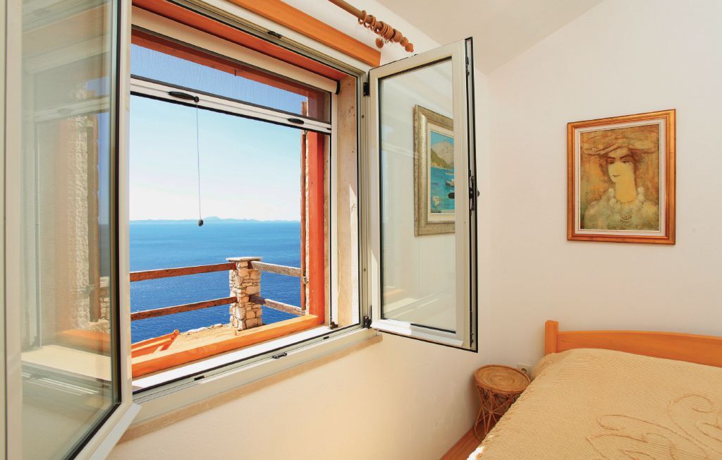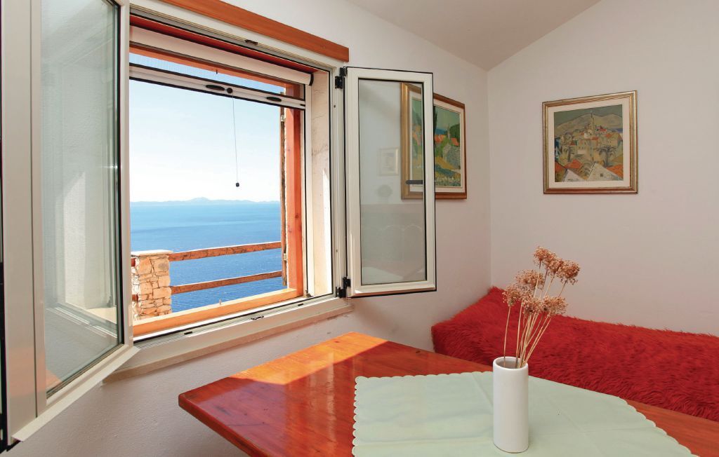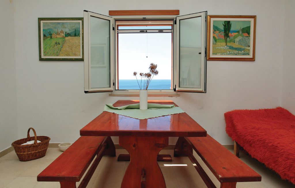 Cette petite maison de vacances traditionnelle attend ses hôtes dans un cadre idyllique sur une pente. De là, vous avez une vue panoramique à couper le souffle sur la mer et les îles de Mljet et Lastovo, l'ambiance de vacances s'installe quasiment d'elle-même. L'alimentation en électricité est assurée par l'énergie solaire, l'eau par une citerne. La maison isolée au milieu de la nature offre une tranquillité totale, vous êtes loin du bruit et de l'agitation de la ville, mais vous êtes quand même à portée de Zrnovo et à environ 20 minutes en voiture de Korcula et de ses manifestations culturelles. Le chemin qui mène de la maison à la route principale n'est pas asphalté.