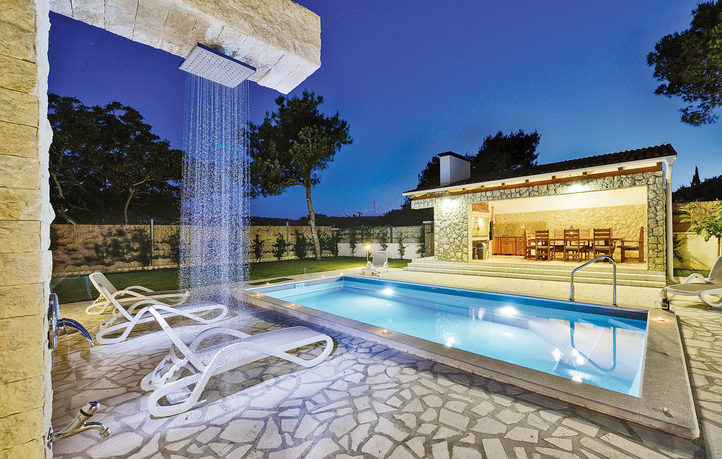Cette luxueuse maison de vacances pour 8 personnes se trouve à proximité de la ville de Sibenik, dans le village de Dubrava. Au rez-de-chaussée se trouvent une chambre à coucher avec salle de bain, des toilettes supplémentaires, une cuisine avec salon et une sortie sur la terrasse avec la piscine. À l'étage, il y a encore deux chambres à coucher avec salle de bains, tandis qu'un canapé-lit se trouve sur la galerie. Dans le jardin se trouvent une maisonnette couverte, un barbecue et des toilettes supplémentaires. Toutes les chambres sont climatisées et disposent chacune d'une télévision. Rafraîchissez-vous dans la piscine et prenez le soleil sur la terrasse dans ce quartier calme. Le parc national de Krka, à ne pas manquer, se trouve à environ 10 minutes en voiture. En été, la ville de Sibenik propose de nombreuses manifestations. Juste à côté de la maison se trouve le logement CDV508, avec lequel vous partagez une petite aire de jeux. Places de parking couvertes disponibles.