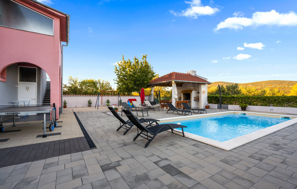 Cette sympathique maison de vacances à Dubrava se trouve non loin de la ville de Tisno. Elle est équipée de manière pratique et fonctionnelle et dispose de trois unités d'habitation. Savourez votre petit déjeuner sur la grande terrasse et rafraîchissez-vous dans la piscine extérieure sur le terrain clôturé pendant les chaudes journées d'été. Le barbecue y est également à votre disposition. Pendant votre séjour, nous vous recommandons de visiter les villes de Tisno et Sibenik, connues pour leurs nombreuses curiosités et leur offre gastronomique riche. Pour les amoureux de la nature, les parcs nationaux de Krka et de Kornati ne devraient pas passer inaperçus.