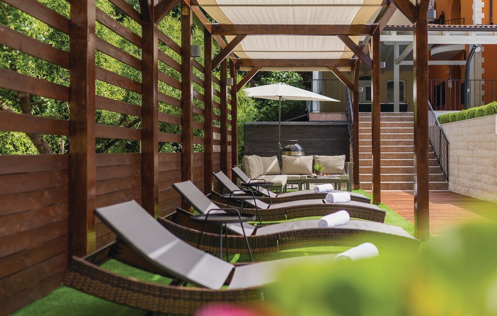 Bien-être à l'extérieur : Location de vacances disposant de chaises-longues et d'un ou plusieurs équipements tels que piscine extérieure, jacuzzi extérieur, lit à baldaquin de jardin etc...