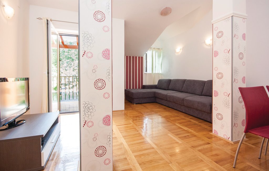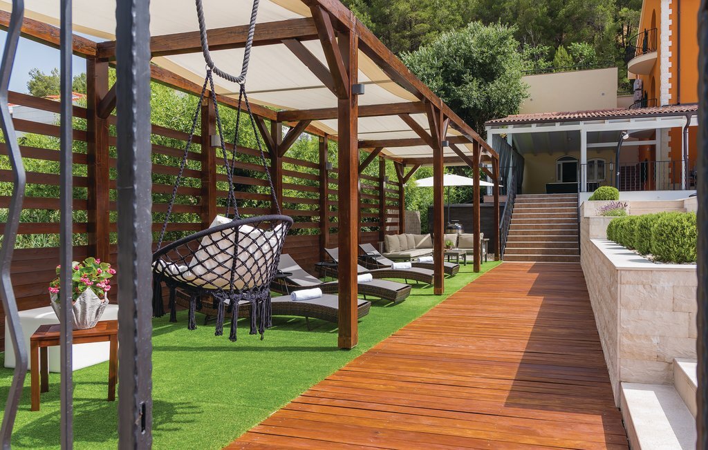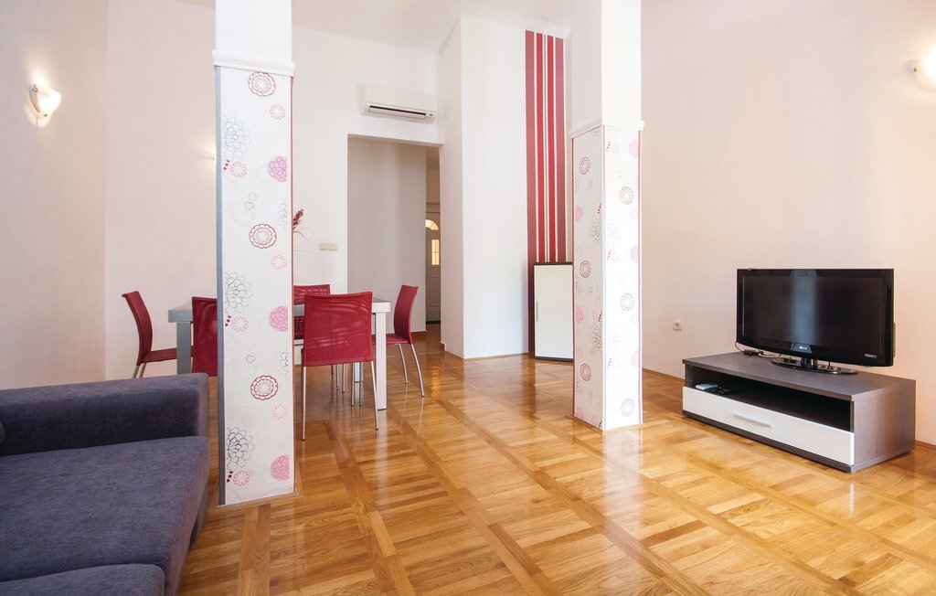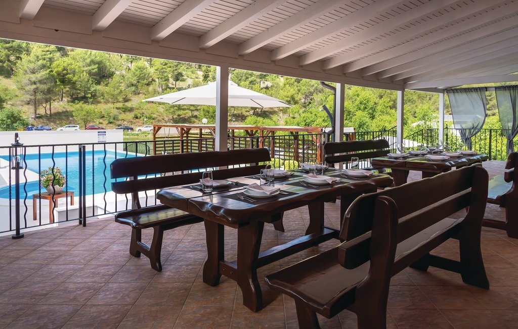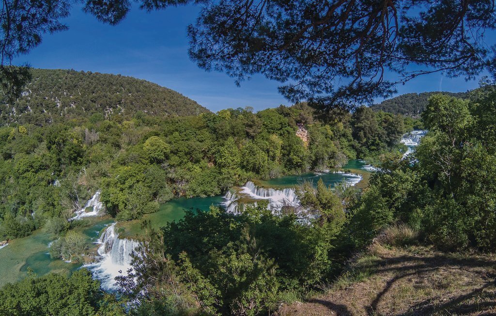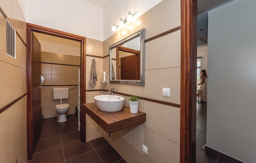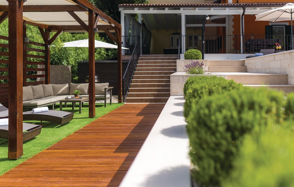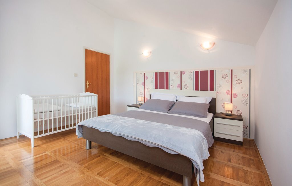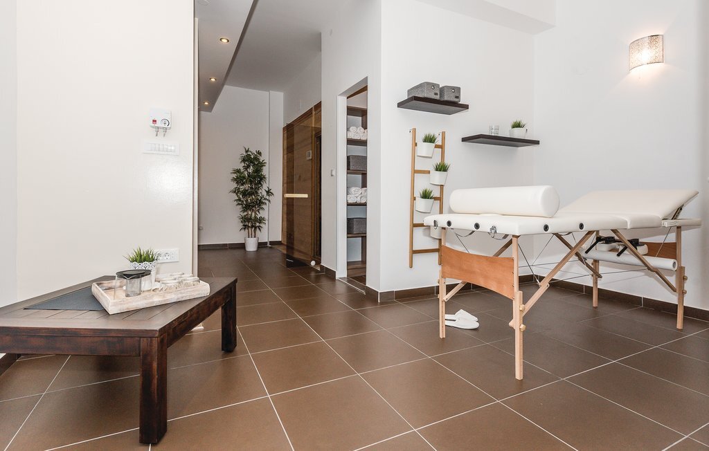Située sur les rives de la rivière Krka et placée dans la ville historique de Skradin, cette grande et confortable maison de vacances vous attend. Elle se compose de trois étages reliés par un escalier extérieur. Tout ce dont vous avez besoin pour vous amuser et vous détendre se trouve au rez-de-chaussée, comme par exemple un bar, un sauna, des douches, une terrasse couverte et une cour intérieure aménagée avec goût avec des meubles de jardin agréables et un baldaquin. Profitez de la nature magnifique lors d'une excursion en bateau vers le parc national de Krka, proposée à proximité. La ville d'ibenik vaut également le détour avec ses monuments historiques, ses activités sportives et sa bonne cuisine.
