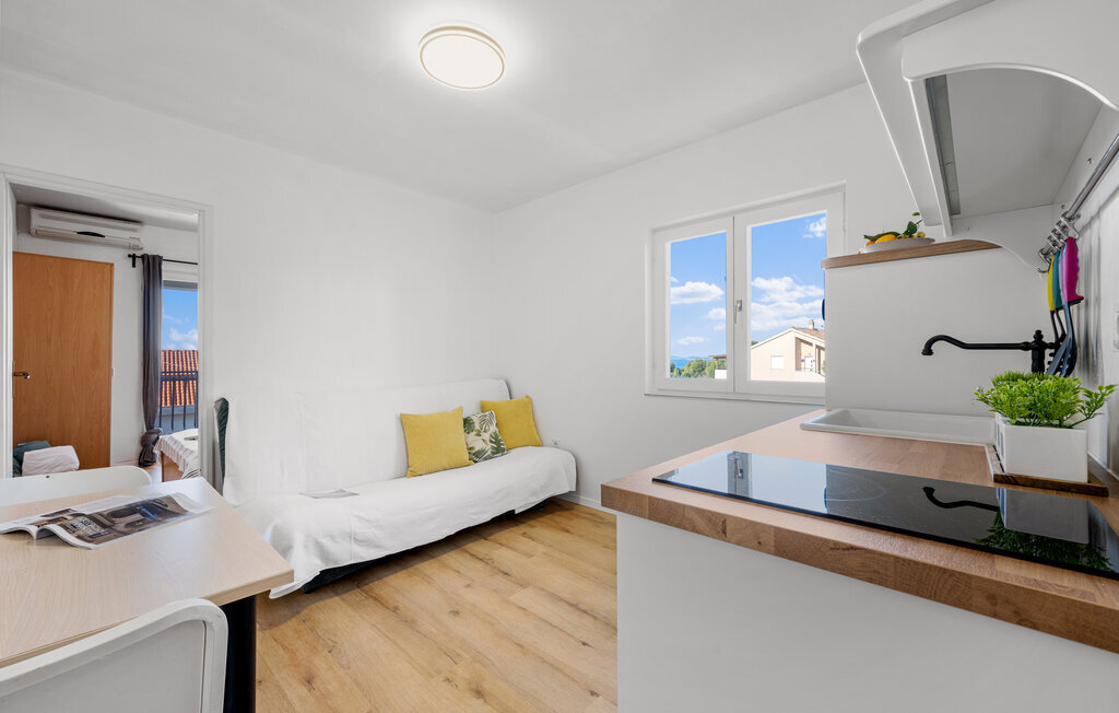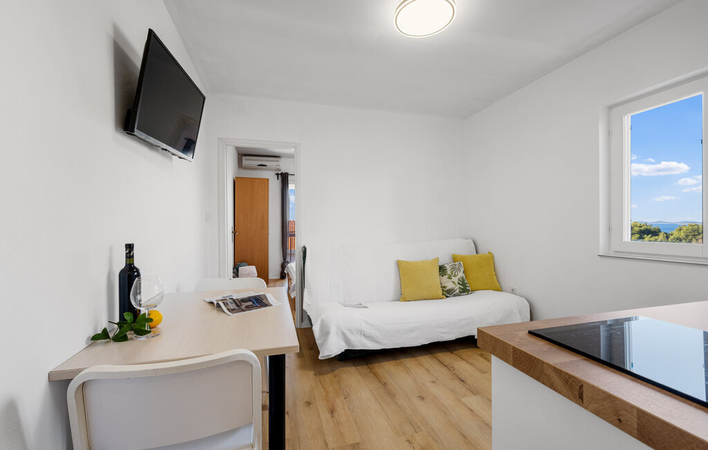 Maison de piscine confortable dans la magnifique ville de Bilo, connue loin à la ronde pour son eau de mer cristalline et sa vue magnifique. Dans la maison de vacances, il y a trois petits appartements et un grand appartement avec un espace de vie commun. Les étages ont des escaliers extérieurs. Dans cette maison de vacances, les familles et les amis peuvent passer leurs vacances ensemble. La ville voisine de Primoten est une destination de vacances appréciée en raison de sa presqu'île, de son architecture méditerranéenne, de ses tavernes et restaurants régionaux ainsi que des nombreuses manifestations organisées en été. Les plages - plages de sable sauvages et adaptées aux enfants ou plages rocheuses cachées - comptent parmi les plus belles de l'Adriatique.