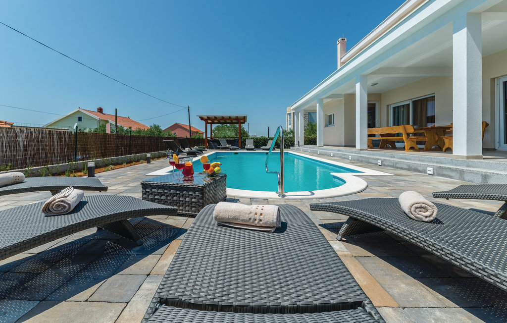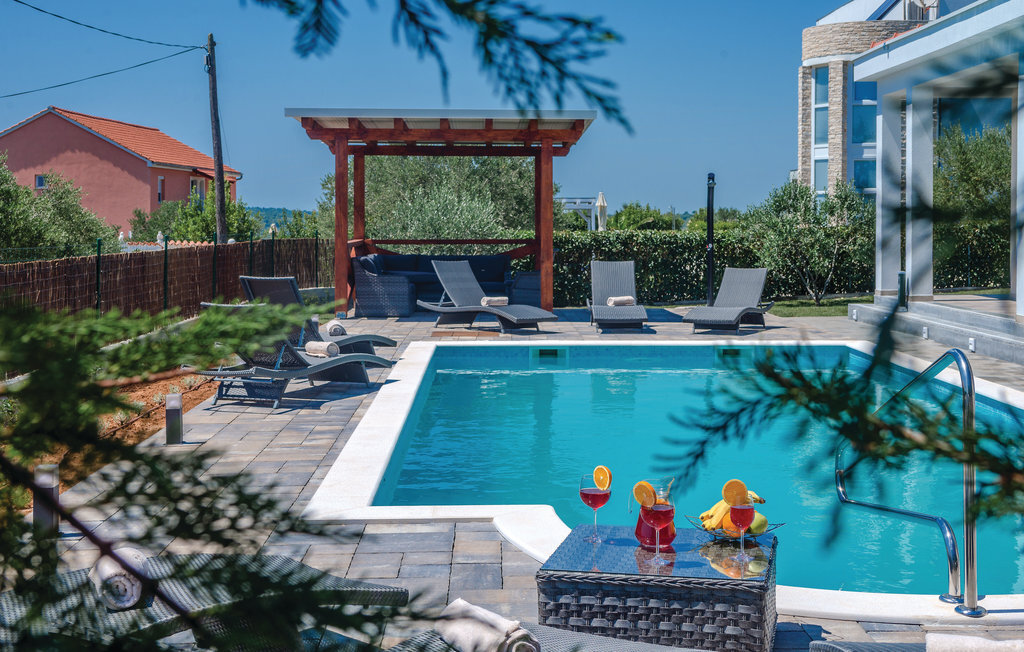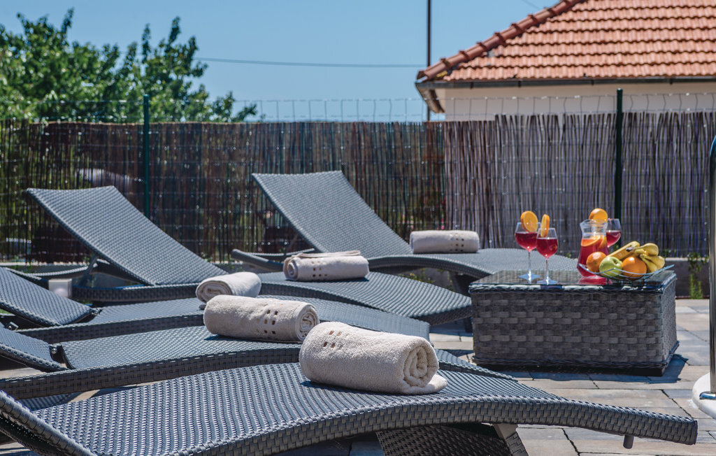 Bien-être à l'extérieur : Location de vacances disposant de chaises-longues et d'un ou plusieurs équipements tels que piscine extérieure, jacuzzi extérieur, lit à baldaquin de jardin etc...
