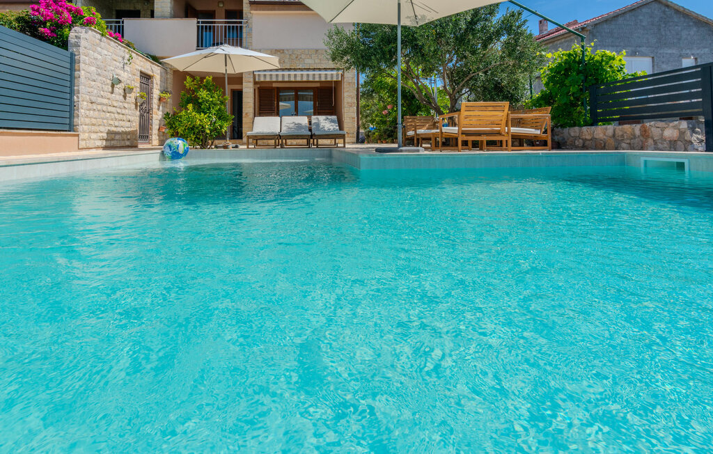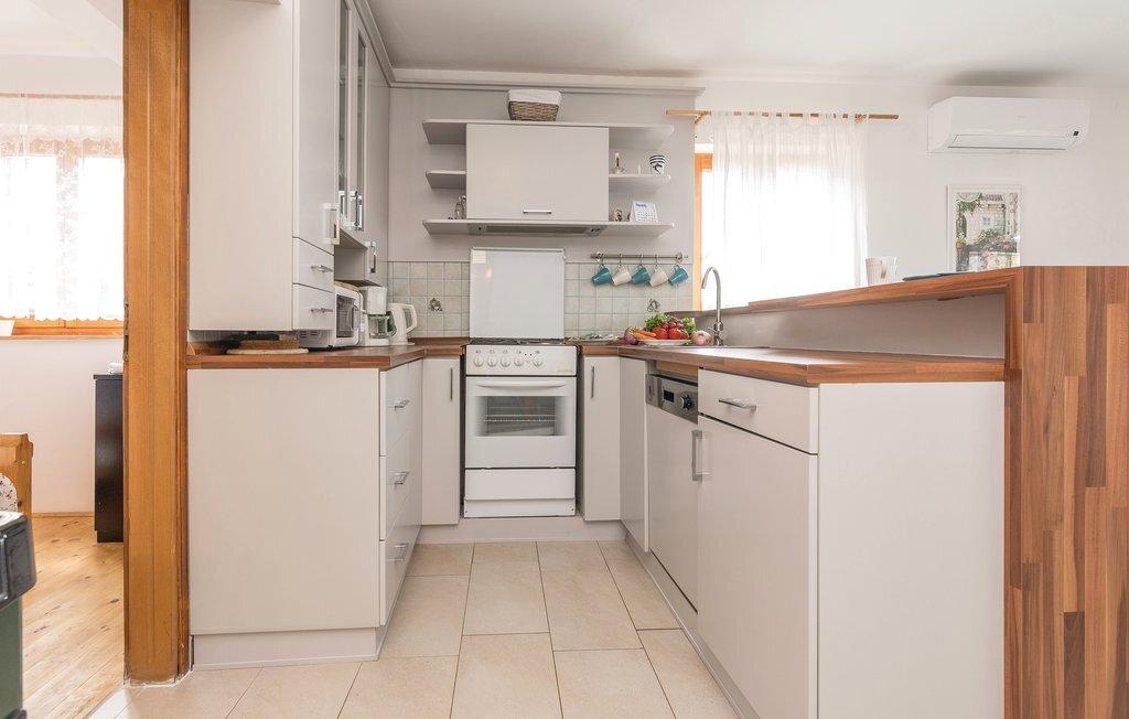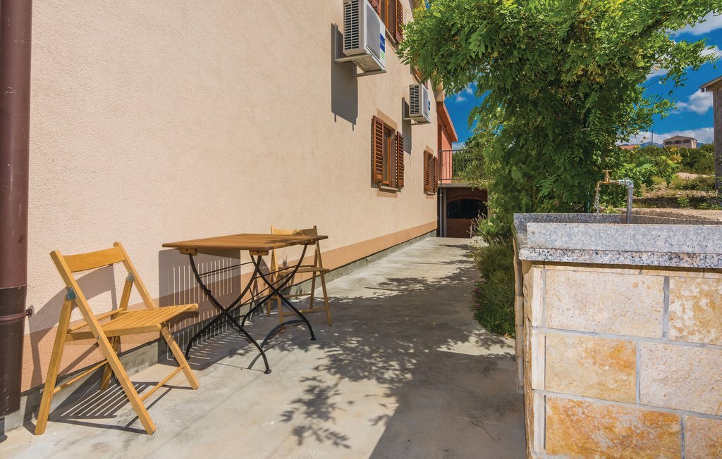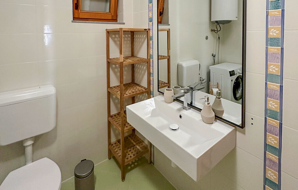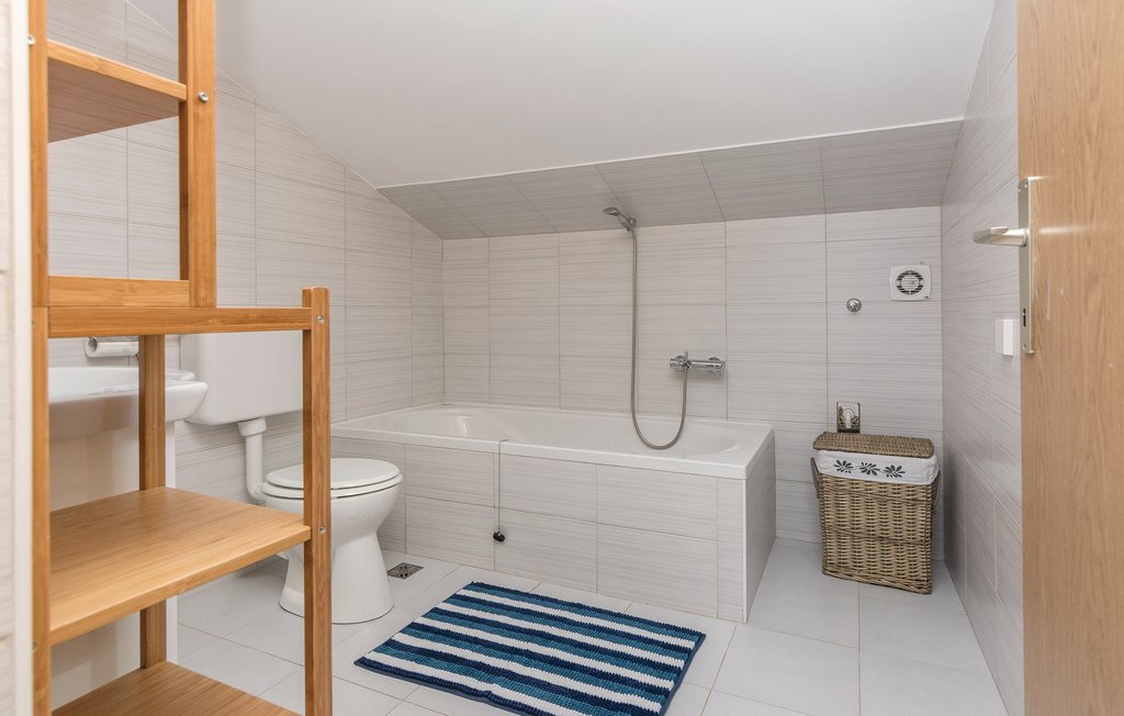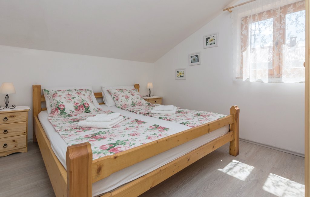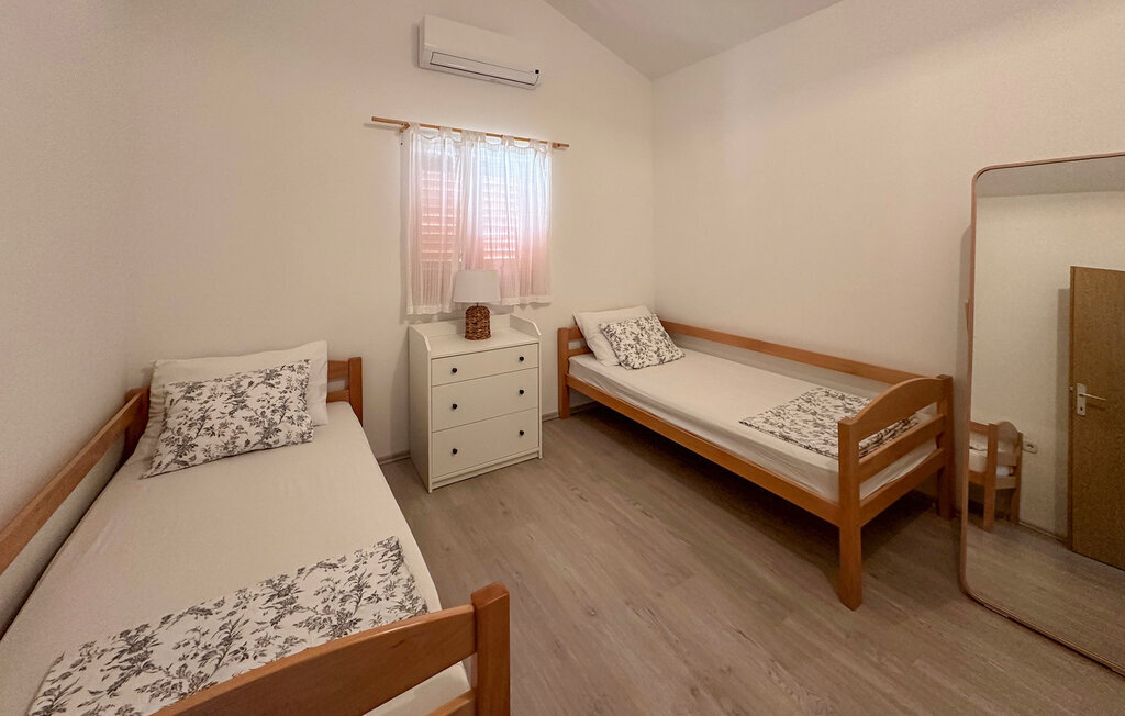 Cette maison jumelée à l'aménagement moderne se trouve à Maslenica. Le logement s'étend au rez-de-chaussée et à l'étage, la hauteur de plafond la plus basse étant de 140 cm. Au rez-de-chaussée se trouvent la cuisine et le salon, ainsi qu'une chambre à coucher et une salle de bain. À l'étage, il y a encore trois chambres, une salle de bain et un balcon couvert avec vue sur la mer. Explorez cette région en visitant le parc national de Paklenica et le parc naturel de Velebit. 300 m d'accès non goudronné. Faites aussi une excursion à Zadar et voyez sur la promenade les "orgues de mer" ainsi que le "Salut au soleil".