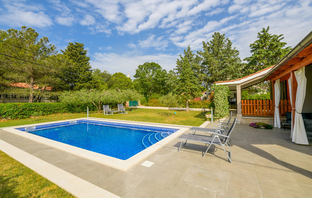 Cette belle maison de vacances avec piscine se trouve à Krnica, sur la côte est de l'Istrie. L'aménagement est de bon goût et toutes les pièces à vivre se trouvent au rez-de-chaussée. Trois chambres à coucher sont à votre disposition. Le terrain est entièrement clos et vous offre une terrasse ensoleillée avec la piscine extérieure. Vous pourrez vous y détendre et profiter de vos vacances en toute tranquillité. Un court trajet en voiture vous amènera à la mer et à la côte rocheuse et aux plages de galets. Dans les environs immédiats se trouvent également plusieurs pistes cyclables, un centre équestre et un parc d'adrénaline.