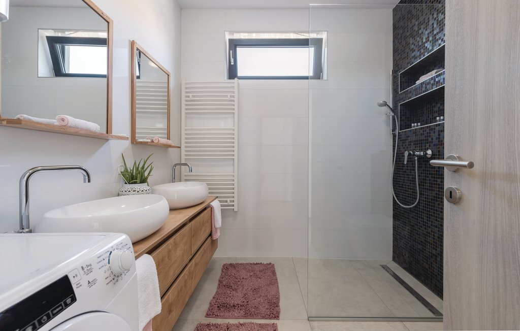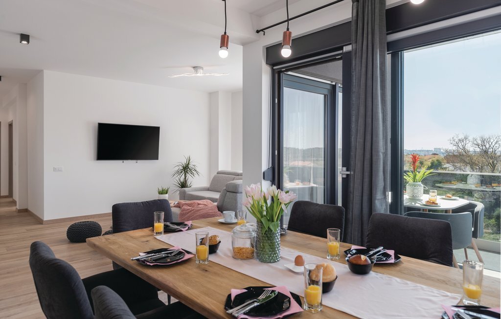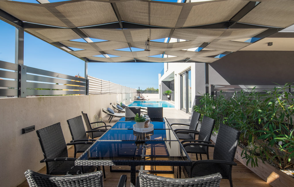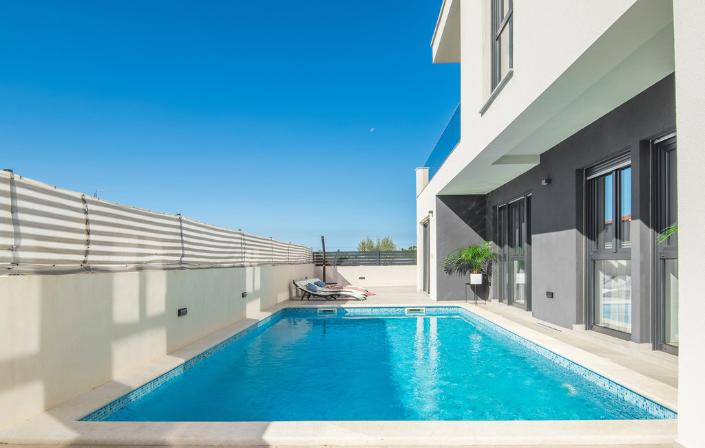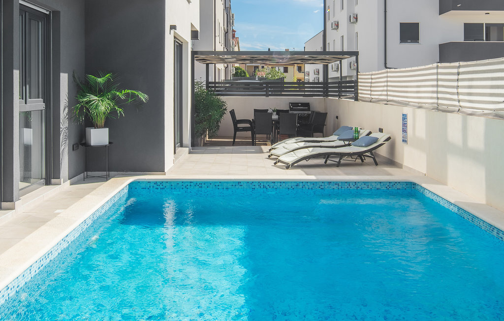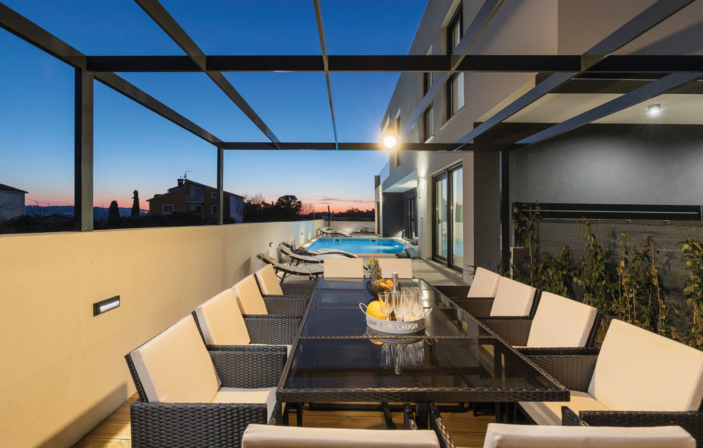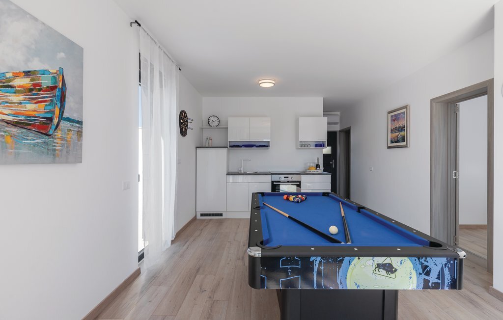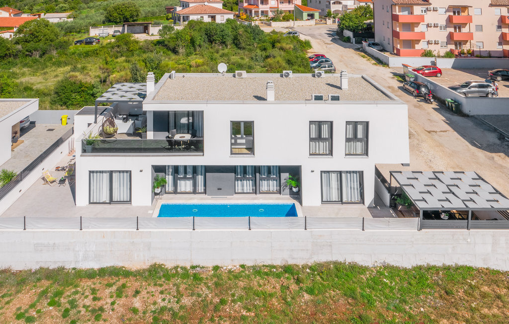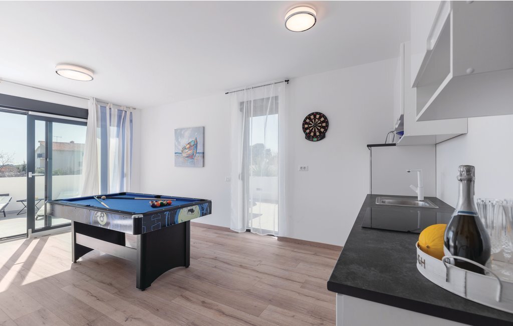 Cette impressionnante maison de vacances avec piscine, située dans un agréable quartier résidentiel de la ville de Pula, est la combinaison parfaite d'un confort douillet et d'un style moderne, qui sont la clé de vacances de rêve. La surface habitable généreuse se compose de trois appartements. Vous y trouverez le salon central avec cuisine et salle à manger ainsi qu'un accès direct à la terrasse extérieure, d'où vous pourrez profiter d'une vue partielle sur la mer. Bien entendu, une piscine ainsi qu'une zone de bronzage et de barbecue vous attendent sur le terrain entièrement clôturé. Après de magnifiques journées de baignade, une visite de l'amphithéâtre romain est recommandée. L'un des appartements du rez-de-chaussée a été aménagé de telle sorte que le salon sert de salle de jeux avec billard, fléchettes et playstation.