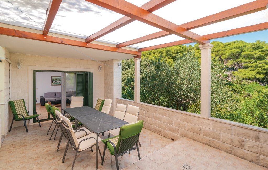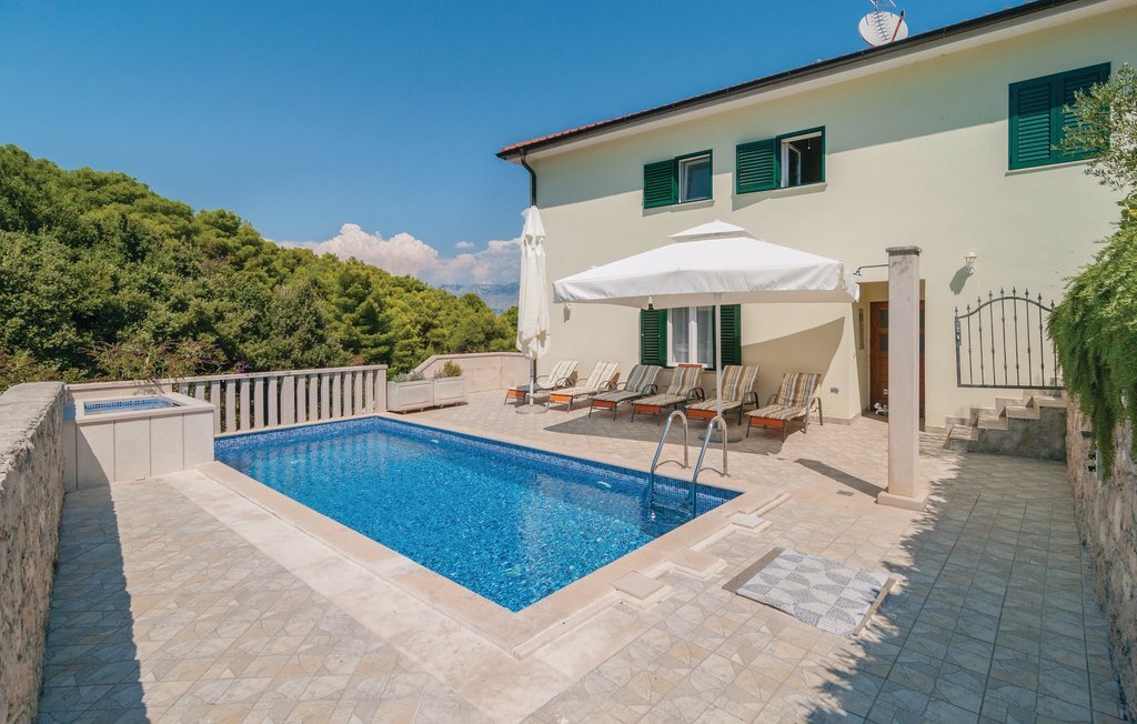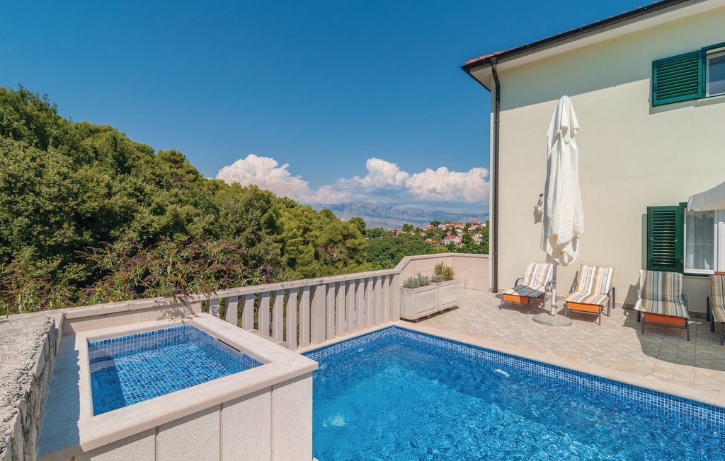 Passez vos vacances dans une atmosphère méditerranéenne sur l'île de Bra, entourée d'une nature intacte et d'oliviers, dans une magnifique maison en pierre dans le village de Splitska. La maison s'étend sur cinq chambres et cinq salles de bain, un salon avec cuisine aussi bien au rez-de-chaussée qu'au premier étage. Le salon et la cuisine donnent sur une terrasse où il fait bon se détendre. Sur la terrasse avec barbecue en plein air, vous pourrez préparer de délicieux repas en compagnie de vos proches. La piscine à côté de la maison est à l'abri des regards indiscrets. Nous vous recommandons en tout cas de visiter la baie de sable de Lovreina, située à environ 5 km de la maison, et de profiter des plages de rochers et de galets toutes proches. Une route non asphaltée de 100 m mène à la maison.