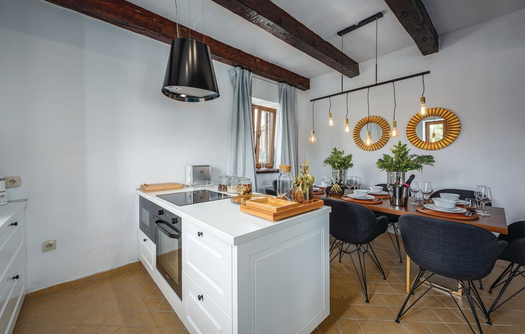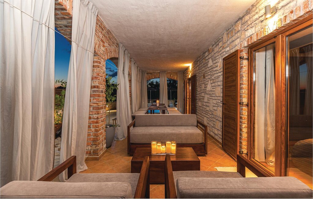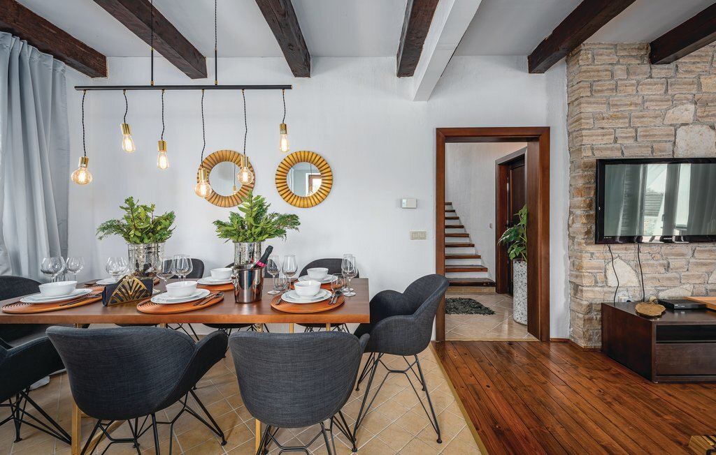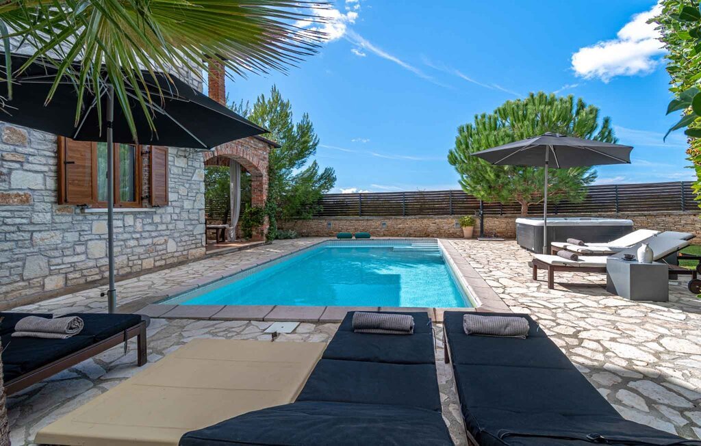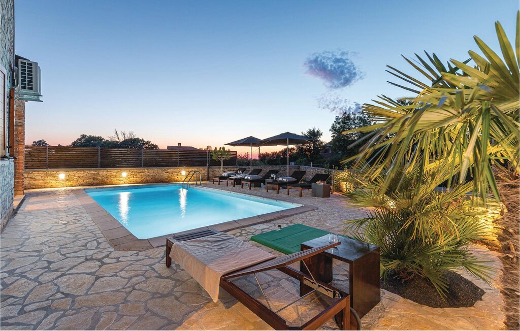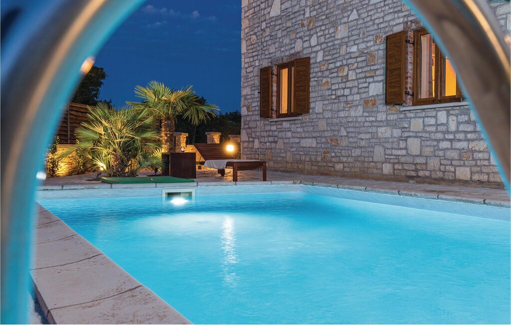 Cette maison de vacances exceptionnelle avec piscine se trouve dans un petit village et offre, grâce à sa situation et à son aménagement intérieur et extérieur confortable, le cadre idéal pour des vacances reposantes. L'intérieur chaleureux est aménagé avec un grand souci du détail et la combinaison de la pierre et du bois donne à la maison une touche particulière. La piscine avec chaises longues, le jardin clôturé et bien entretenu ainsi que la belle véranda couverte avec coin salon et le barbecue extérieur constituent l'équipement parfait pour des vacances inoubliables. Les premières plages ne sont qu'à 15 minutes en voiture et partagent la mer cristalline avec le parc national de Brioni. Réservez une excursion vers ces îles magnifiques et visitez la ville voisine de Faana, riche en événements nocturnes et en gastronomie.
