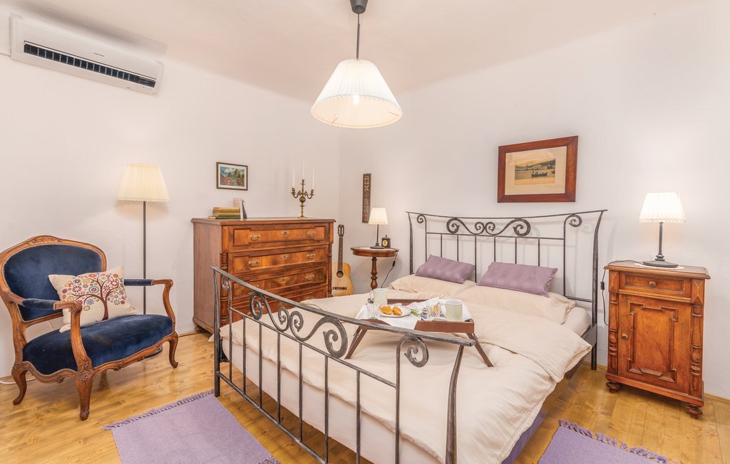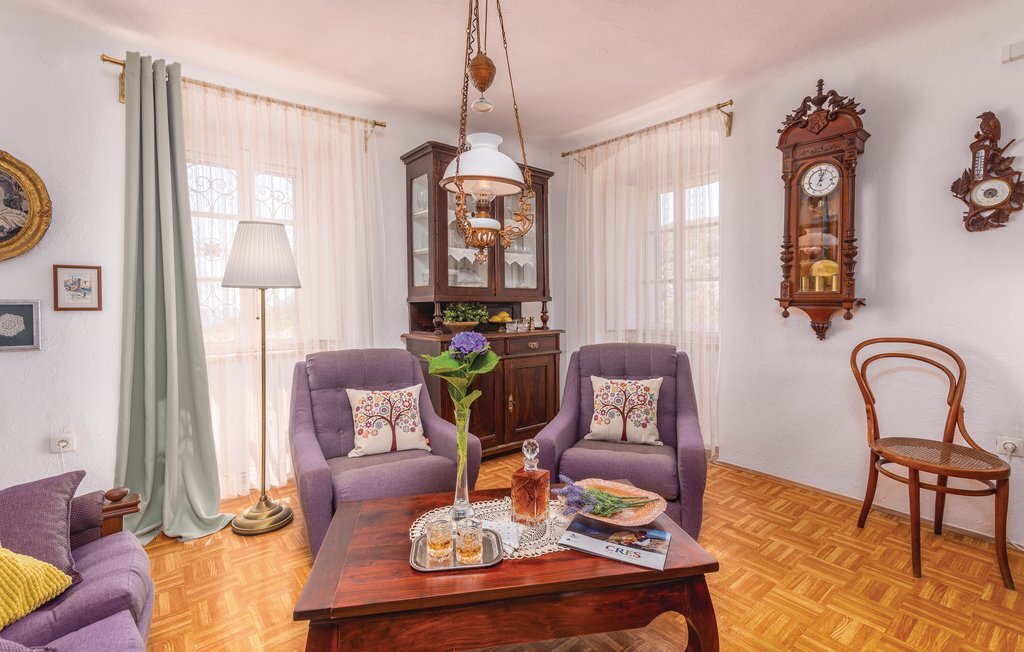 C'est sur la magnifique île de Cres, dans le petit village de Predoica, que se trouve cette maison de vacances. Elle est située sur une colline, d'où vous pourrez admirer un panorama spectaculaire sur la mer, l'île de Krk et la baie de Kvarner. Devant la maison vous attend une grande terrasse qui vous invite à vous détendre et à manger en plein air. Vous pourrez y profiter de la belle vue ainsi que des senteurs et des bruits du paysage naturel.