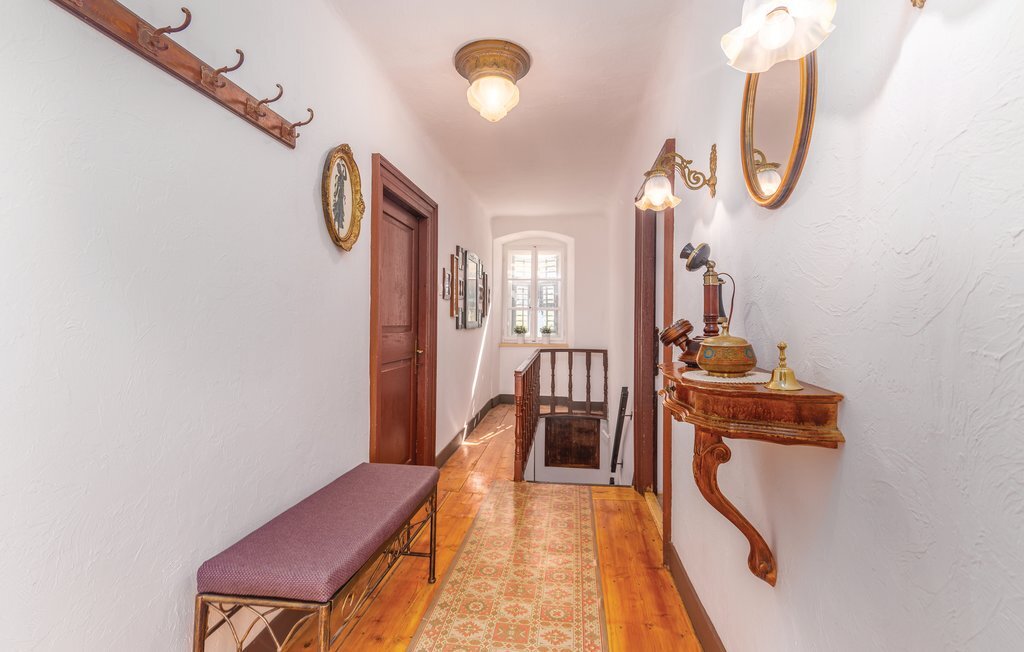 Les pièces intérieures sont réparties sur trois étages. Le rez-de-chaussée comprend un salon, une cuisine avec coin repas et deux chambres à coucher. Deux autres chambres sont situées au premier étage, tandis que la salle de bain avec machine à laver se trouve au sous-sol. Le sous-sol dispose d'une deuxième entrée à l'arrière et un barbecue est à votre disposition dans le jardin.