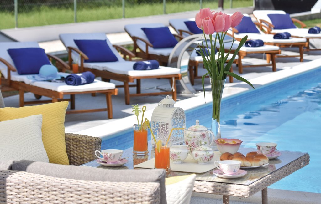 Bien-être à l'extérieur : Location de vacances disposant de chaises-longues et d'un ou plusieurs équipements tels que piscine extérieure, jacuzzi extérieur, lit à baldaquin de jardin etc...