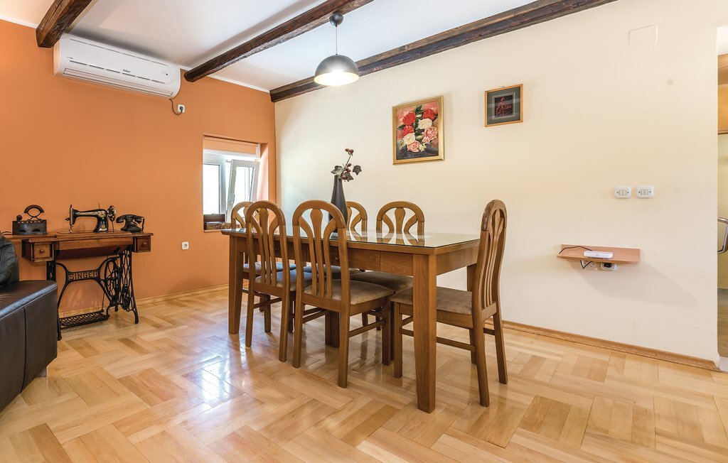 Cette maison de vacances conviviale et aménagée de manière pratique se trouve dans le petit village de Bilice, non loin de Sibenik. Profitez du calme de cette location de vacances qui s'étend sur deux étages reliés par des escaliers intérieurs. Visitez Sibenik, avec ses nombreuses curiosités culturelles et historiques, la plage de Banj, la promenade et les remparts conservés. Pour les gourmets, il existe un choix varié de restaurants proposant une cuisine dalmate traditionnelle. Faites des excursions dans les parcs nationaux de Krka et des îles Kornati.
