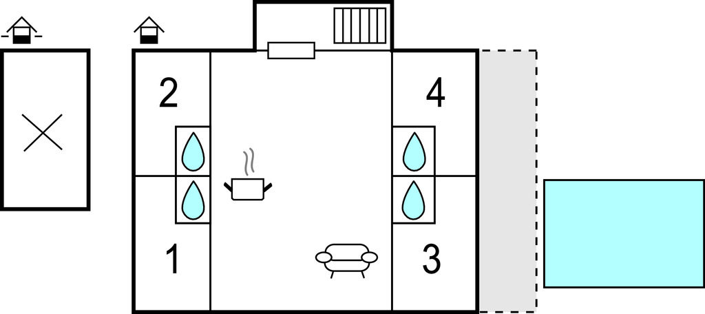 Dans la cour non clôturée, deux piscines extérieures privées sont à votre disposition. Passez des heures de détente sur les chaises longues et profitez de la vue sur le paysage en buvant un rafraîchissement glacé. Au sein de l'éco-village, il y a un lieu commun pour les réunions.
