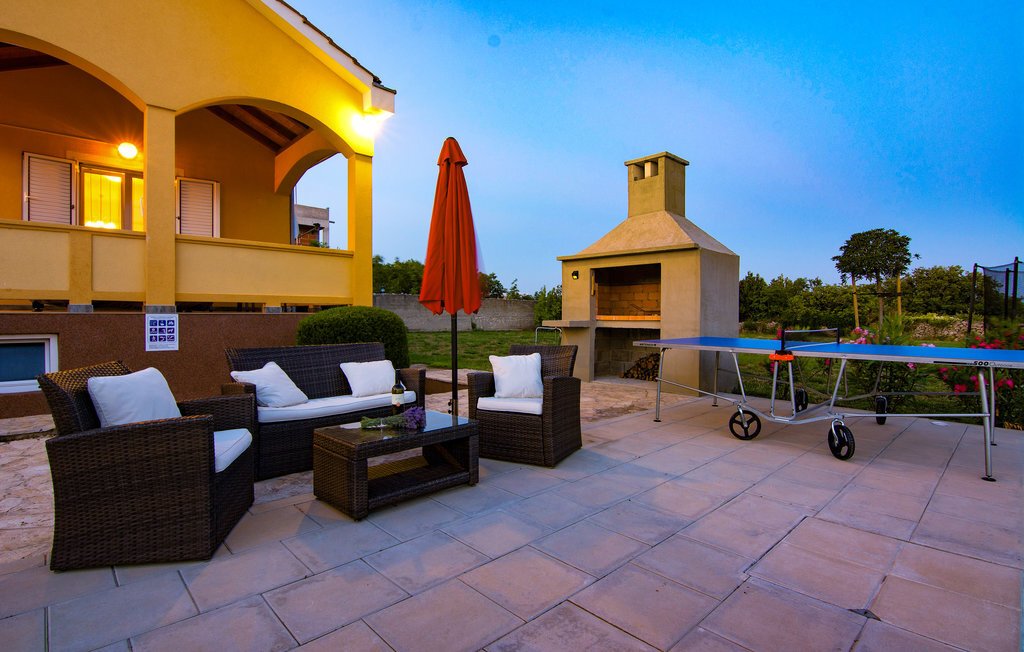 Activités de plein air : Cette location de vacances propose au moins 3 activités de plein air pour toute la famille comme par exemple une table de ping-pong, un trampoline, des boules de pétanques, un panier de basket avec son ballon etc...