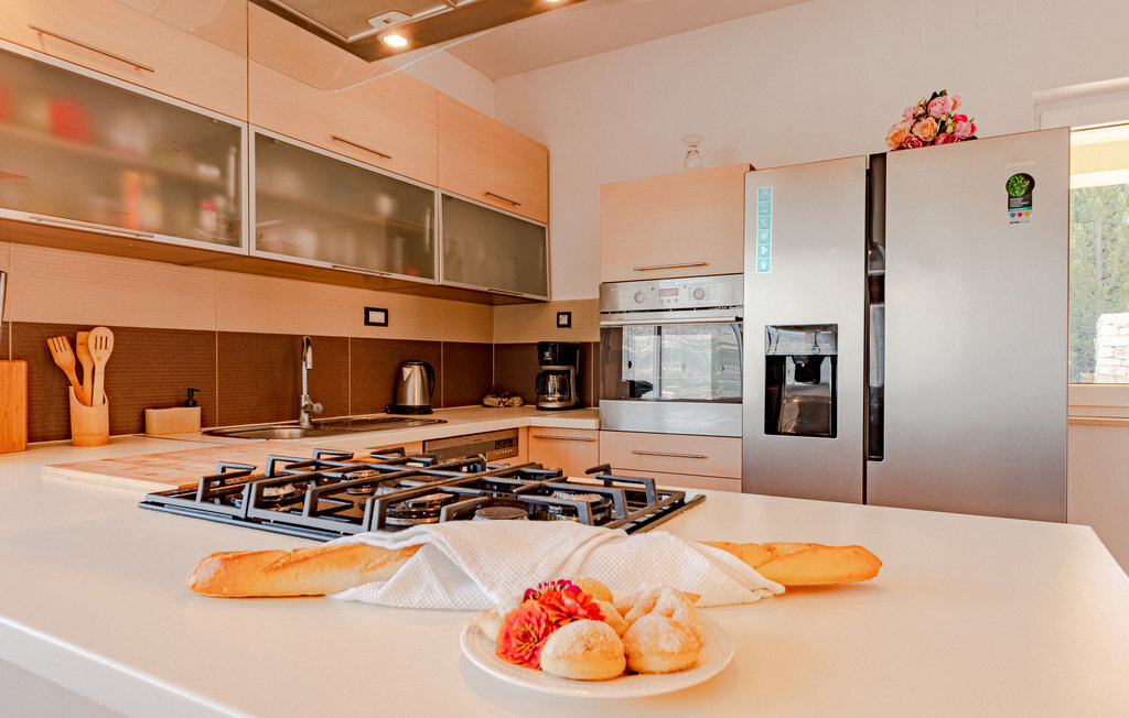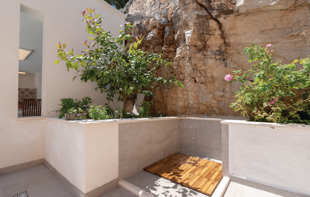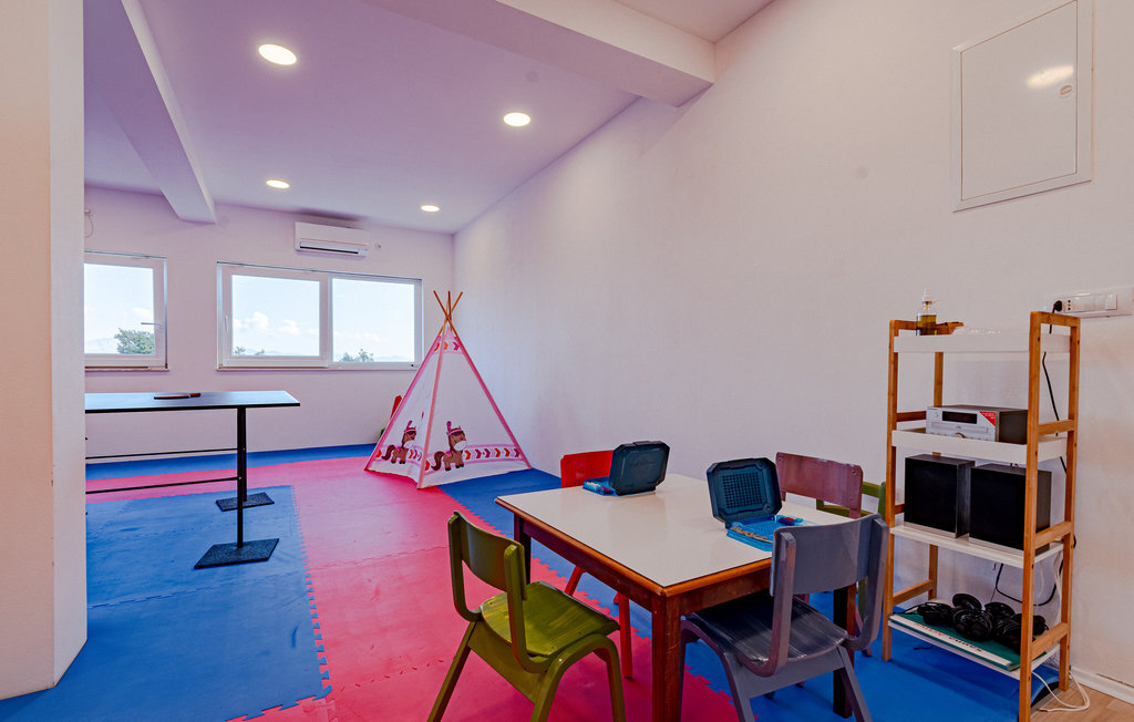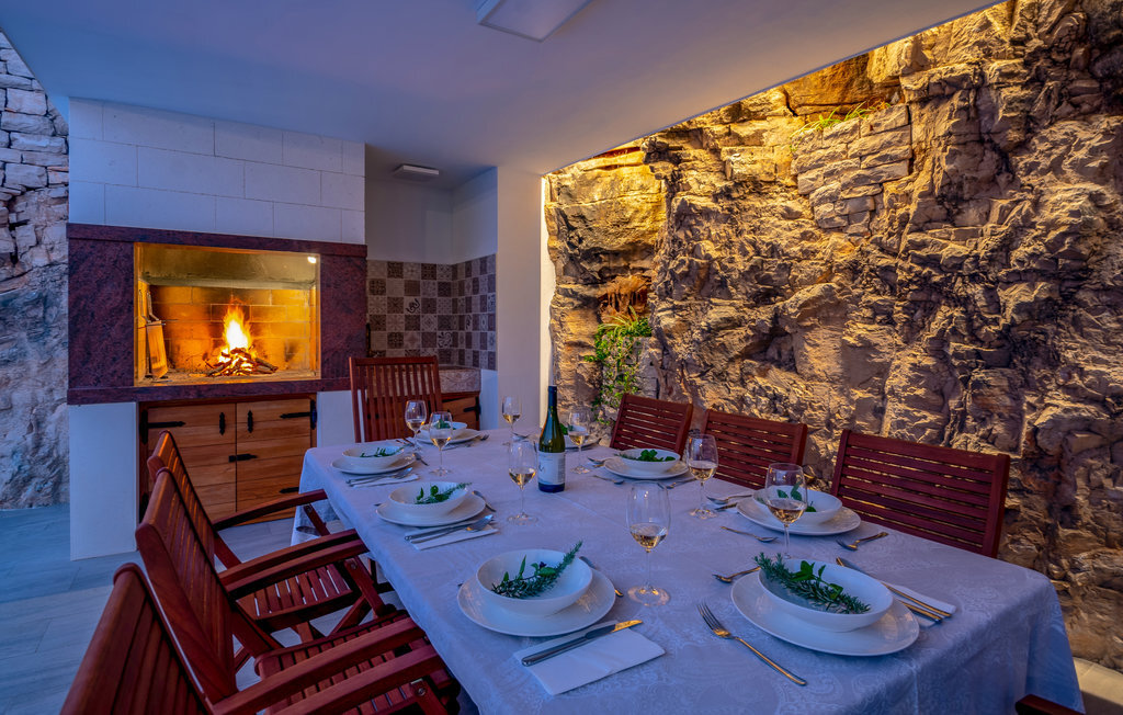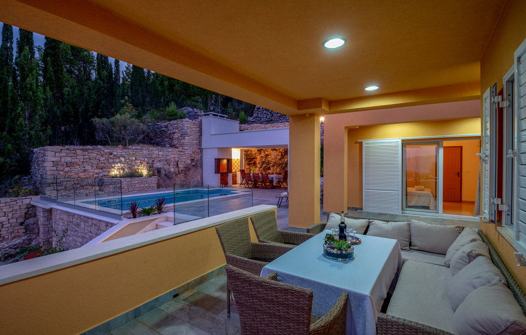 A la sortie du village authentique de rnovo et sur le chemin de la pittoresque baie de rnovska Banja se trouve cette maison de vacances idéale pour les familles. Outre la terrasse avec piscine, barbecue et un coin repas, il y a une terrasse lounge pour se détendre. Au même étage se trouve un espace de vie moderne avec une vue unique sur le canal de Peljeac, une cuisine de qualité et 4 chambres avec 3 salles de bains. Au rez-de-chaussée, il y a une salle de fitness, un sauna et une aire de jeux pour les enfants. Vous bénéficiez ici d'une grande intimité tout en étant à 5 minutes en voiture des plages les plus proches, de la ville magique de Korula et de toute une série d'offres touristiques.