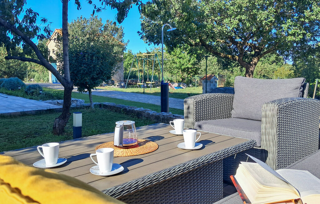 Cette belle maison de vacances se trouve à proximité immédiate du parc national de Krka, dans un petit village tranquille de Konjevrate, dans l'arrière-pays de Sibenik. L'intérieur est équipé de manière fonctionnelle. Sur le terrain clôturé de 12.000 m², recouvert de plantes méditerranéennes, une grande piscine extérieure et une pelouse avec des chaises longues sont à disposition. Des installations pour petits et grands, comme des balançoires et un bac à sable, ainsi qu'un terrain de basket sont disponibles. Il y a également un verger et un potager avec des produits biologiques ainsi qu'un barbecue pour la préparation d'une variété de plats méditerranéens. C'est aussi une position idéale pour explorer la cuisine dans certaines tavernes locales. Les amoureux de la nature et les vacanciers actifs seront ravis de découvrir 56 km de belles pistes cyclables, puis de visiter le parc national de Krka, des sites archéologiques et la deuxième plus ancienne centrale hydroélectrique de la planète, Jaruga, au sein du parc national. Il y a aussi les belles villes de Skradin et Sibenik, qui attirent les visiteurs avec des sites intéressants.