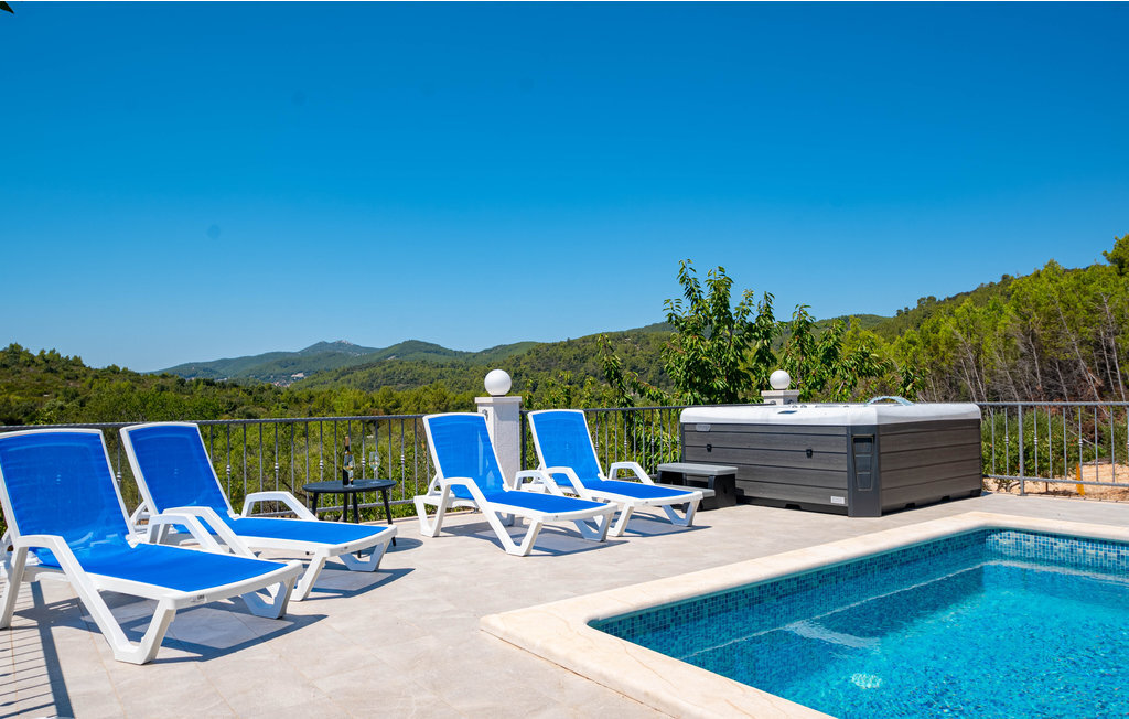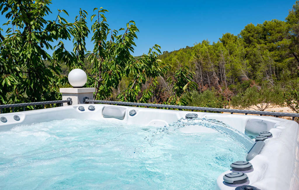 Bien-être à l'extérieur : Location de vacances disposant de chaises-longues et d'un ou plusieurs équipements tels que piscine extérieure, jacuzzi extérieur, lit à baldaquin de jardin etc...